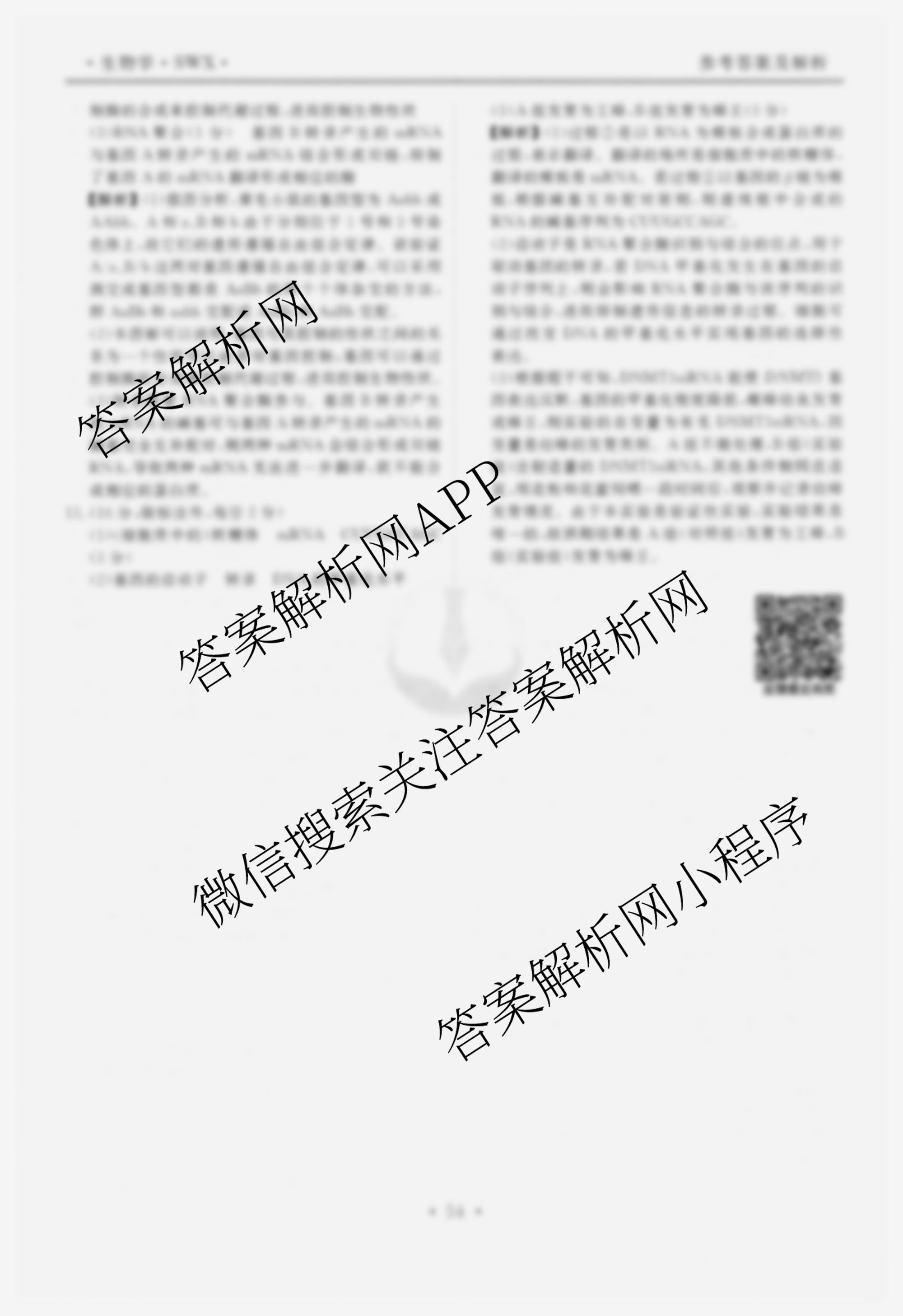 - [高三]2024-2025(衡水金卷先享题)一轮复习40分钟周测卷生物(SWX (H))(十四)14答案