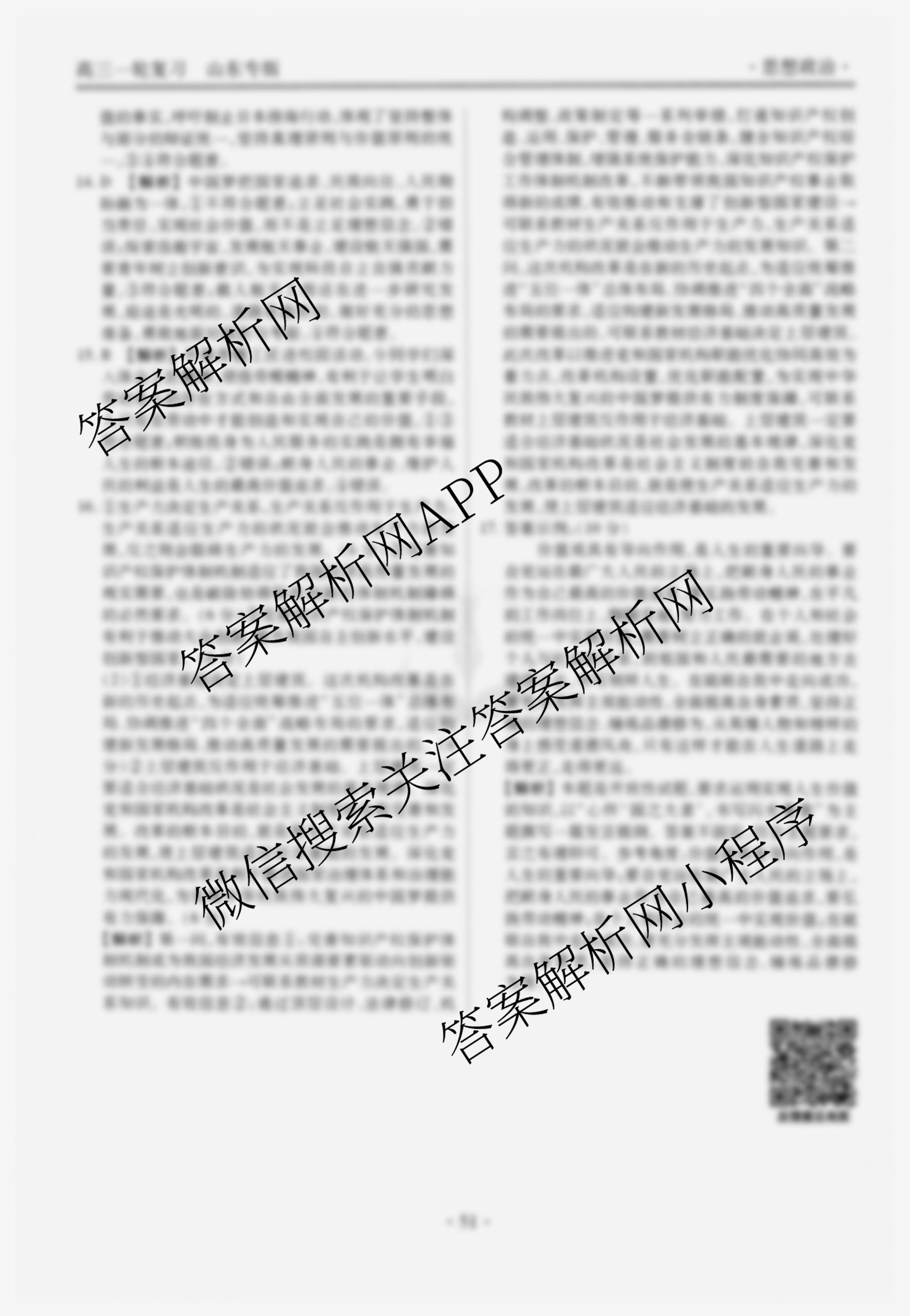 2024~2025衡水金卷先享题[高三]一轮复习40分钟周测卷政治(山东专版)(十三)13答案