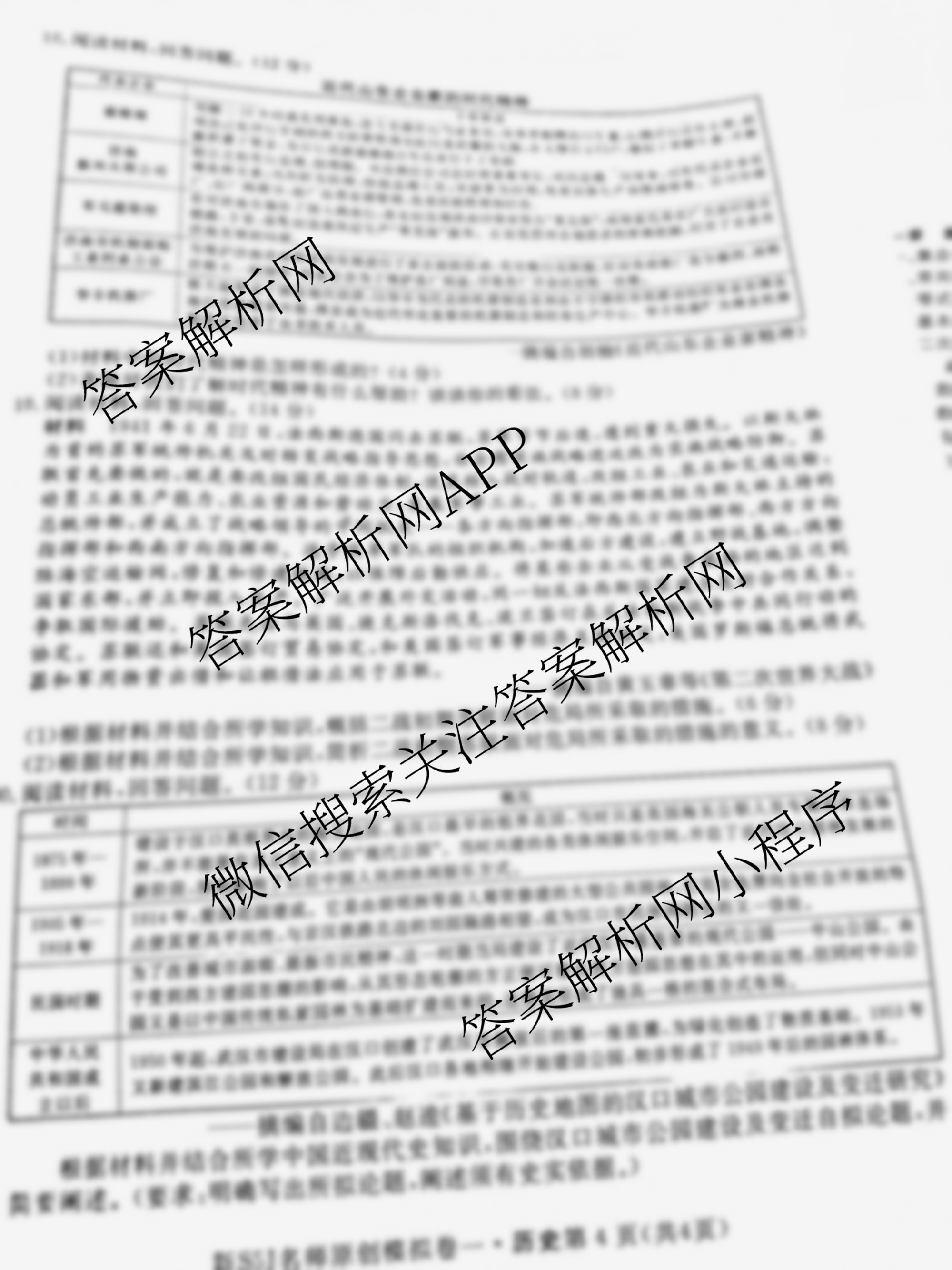 - [高三]2025届(总复习名师原创模拟)(一)1历史(CQX5)答案