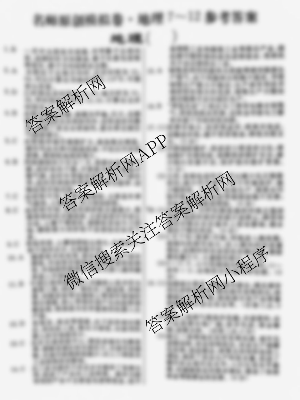 - 2025届[[高三]总复习名师原创模拟] 地理(新S5J)(七)7答案