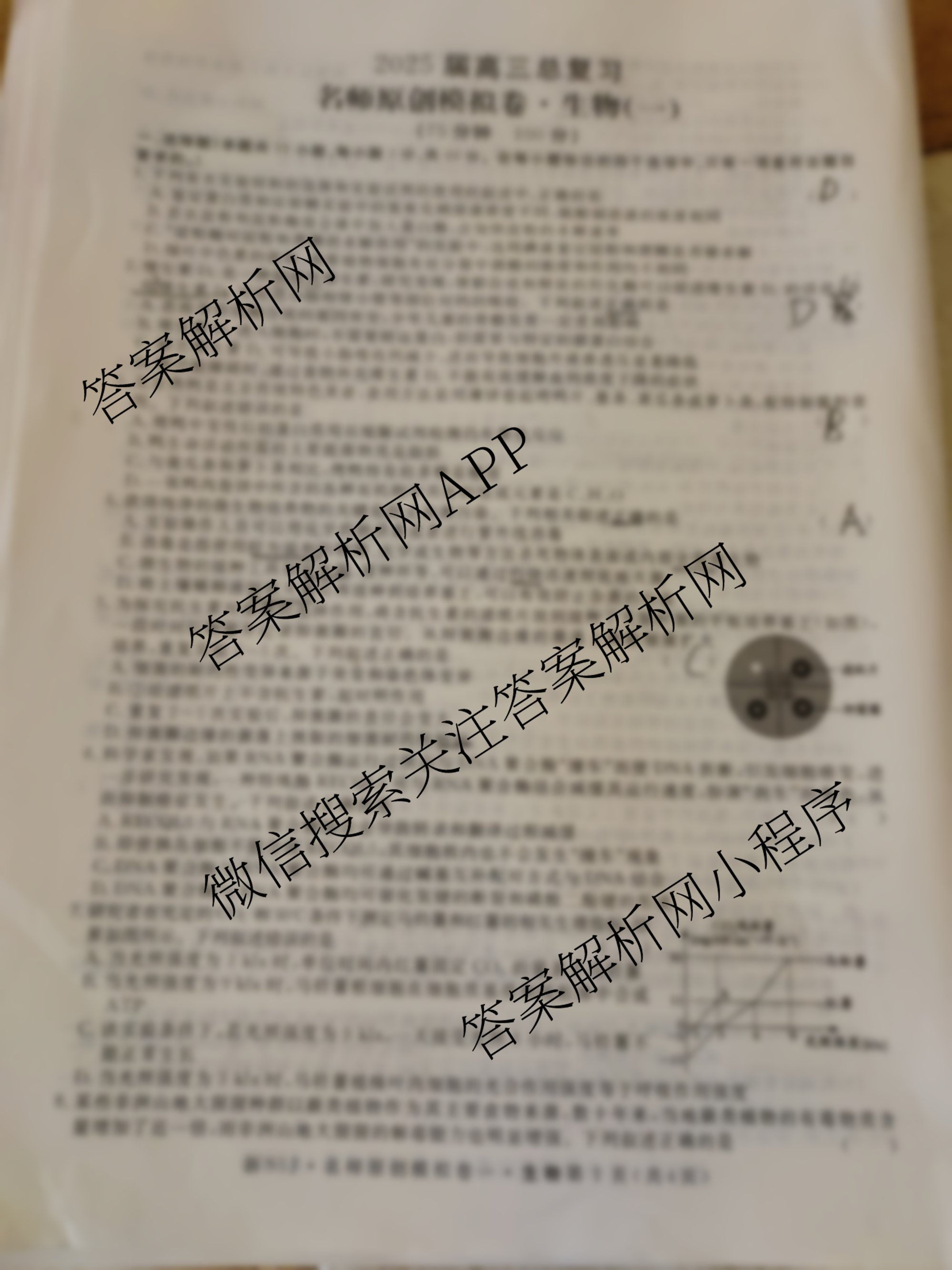 2025届高三总复习·名师原创模拟 生物(新S5J)(一)1试题,目前衡水试卷网已经汇总了2025届高三总复习·名师原创模拟 生物(新S5J)(一)1试题的各科答案和试卷,获取更多高三总复习·名师原创模拟答案解析,请在关注本站。