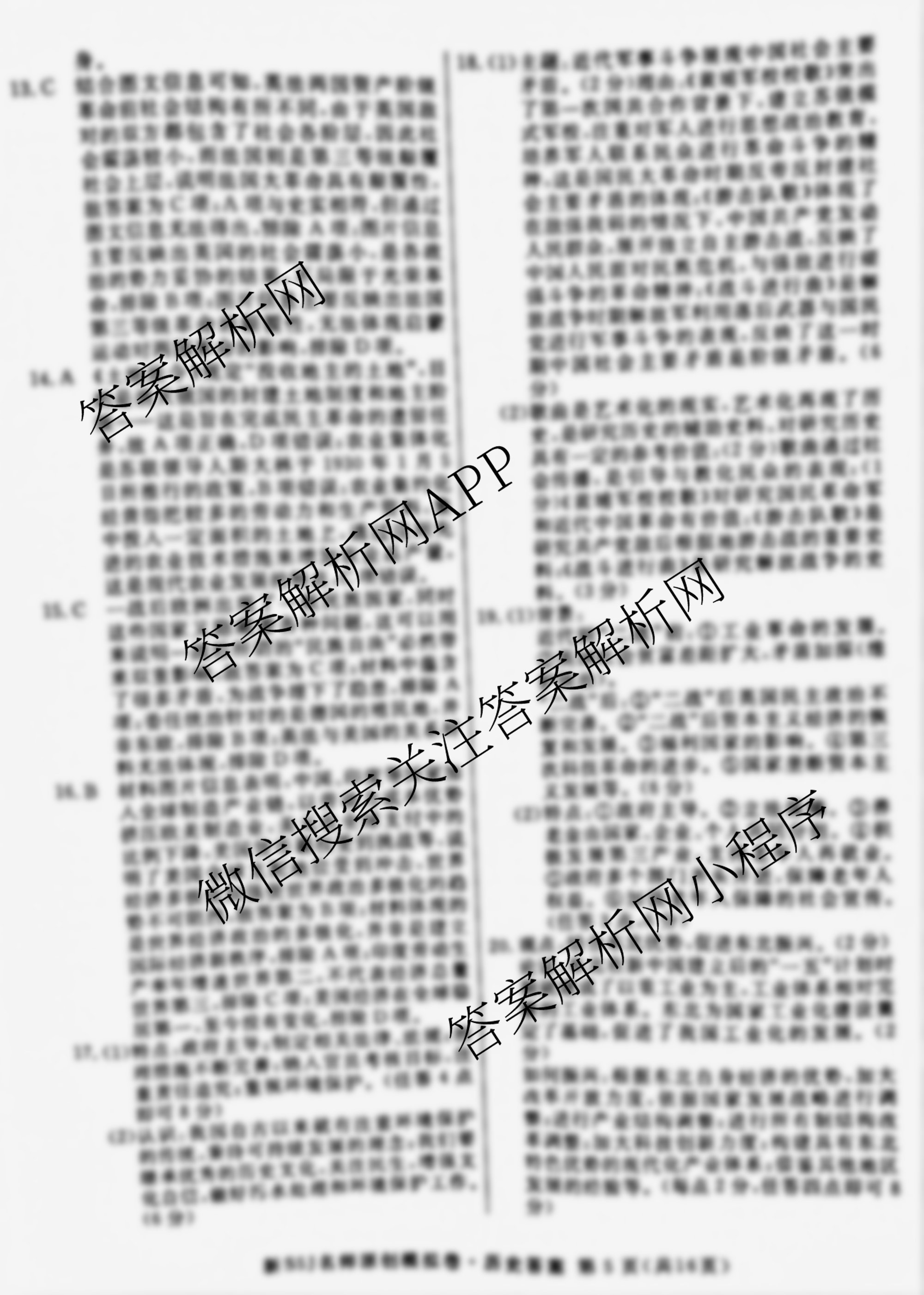 - 2025届[[高三]总复习名师原创模拟](八)8历史(CQX5)答案