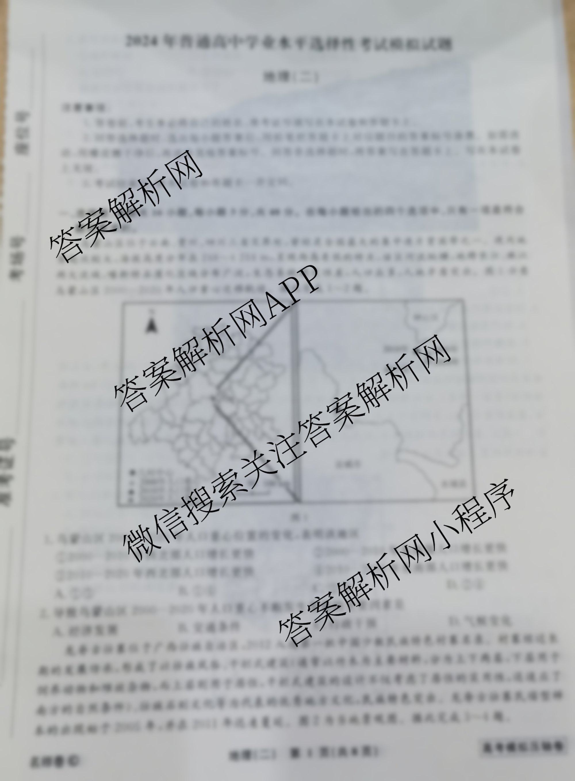 - [高三]衡水名师卷2024年普通高中学业水平选择性考试模拟 高考模拟压轴卷(二)2地理(※)试题