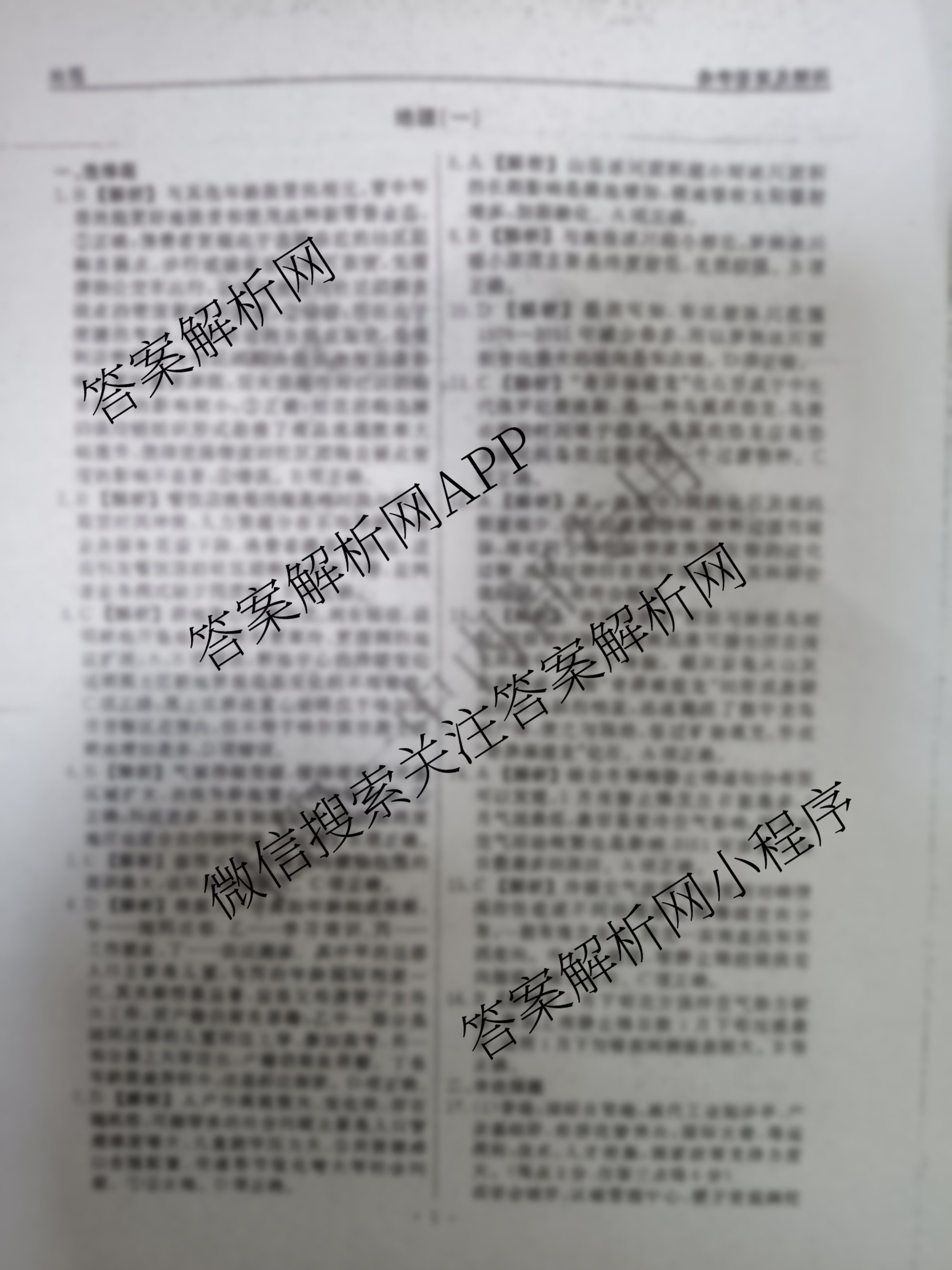 - [衡水名师卷]2023-2024高考模拟压轴卷 文综(无角标)(一)1答案