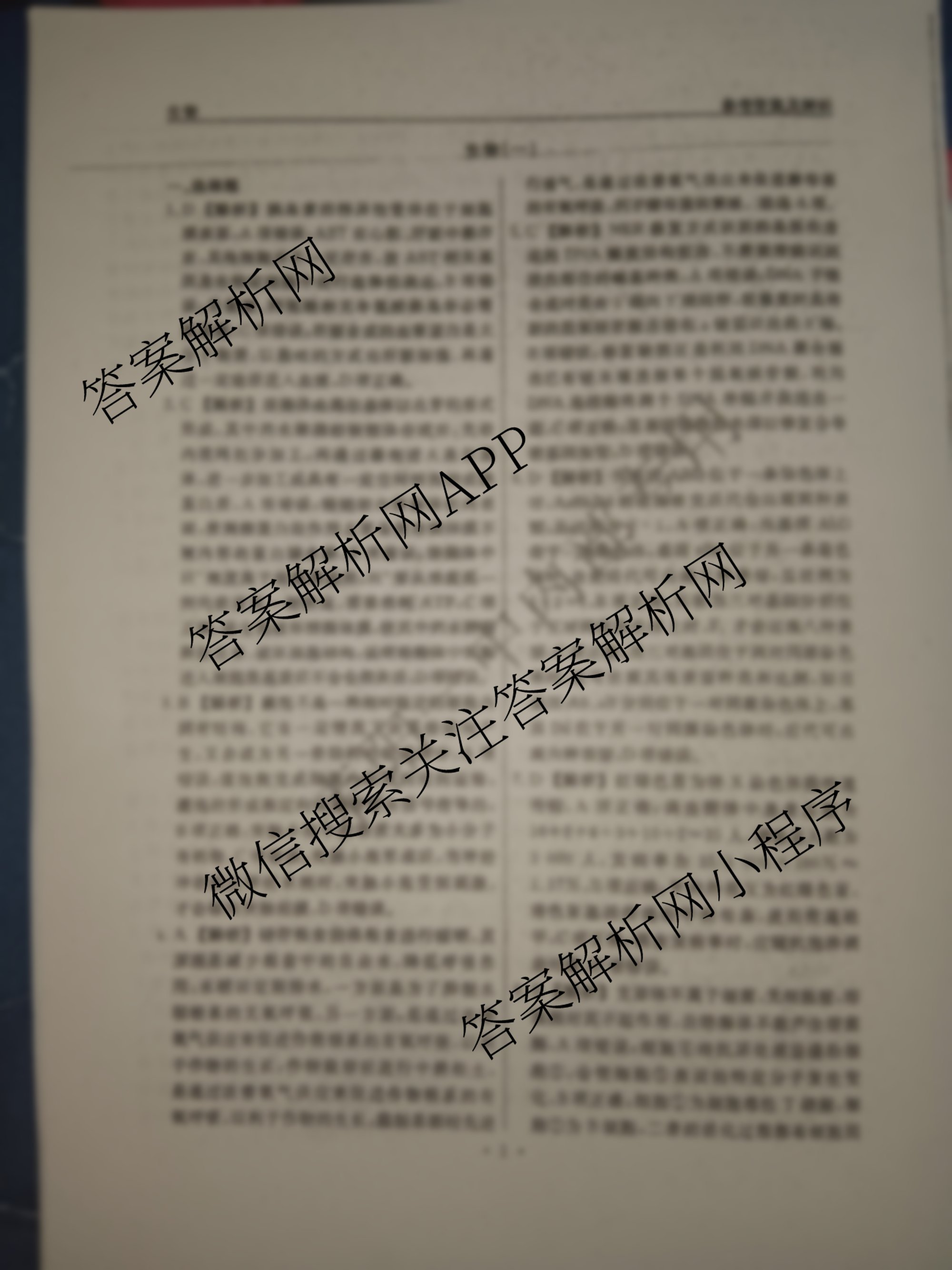 - (高三)[衡水名师卷]2023-2024高考模拟压轴卷 理综(老高考)(一)1答案