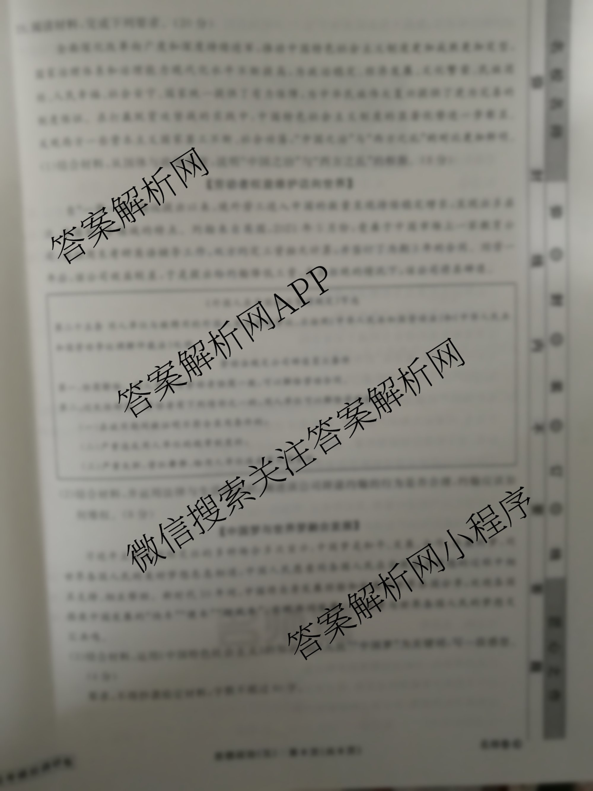 - [高三](衡水名师卷)·高考模拟调研卷 2024年普通高等学校招生全国统一考试模拟试题 文综(实心◇)(五)5试题