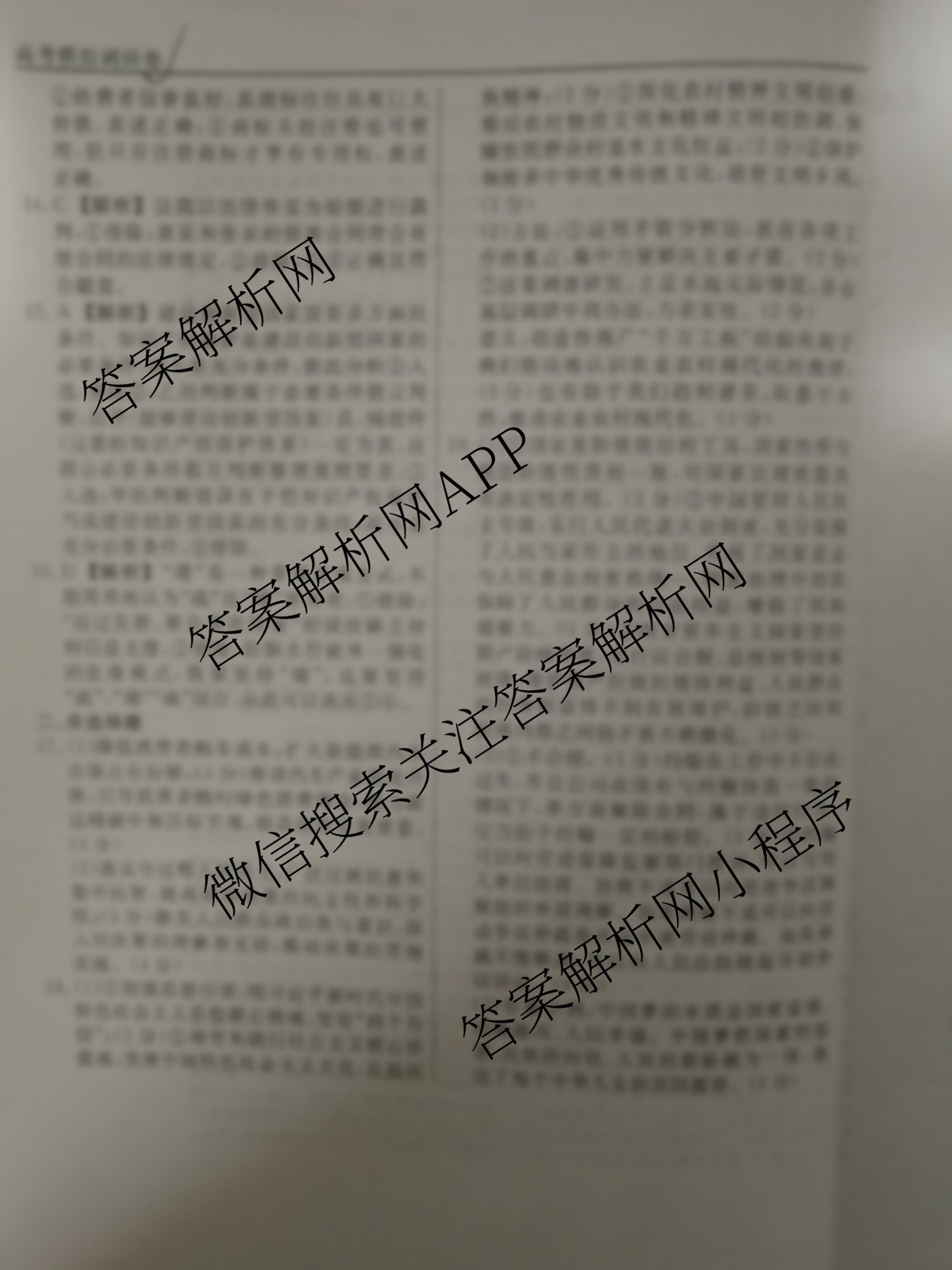 - (高三)[衡水名师卷]高考模拟调研卷2024年普通高中学业水平选择性考试模拟试题 政治(实心○)(五)5答案