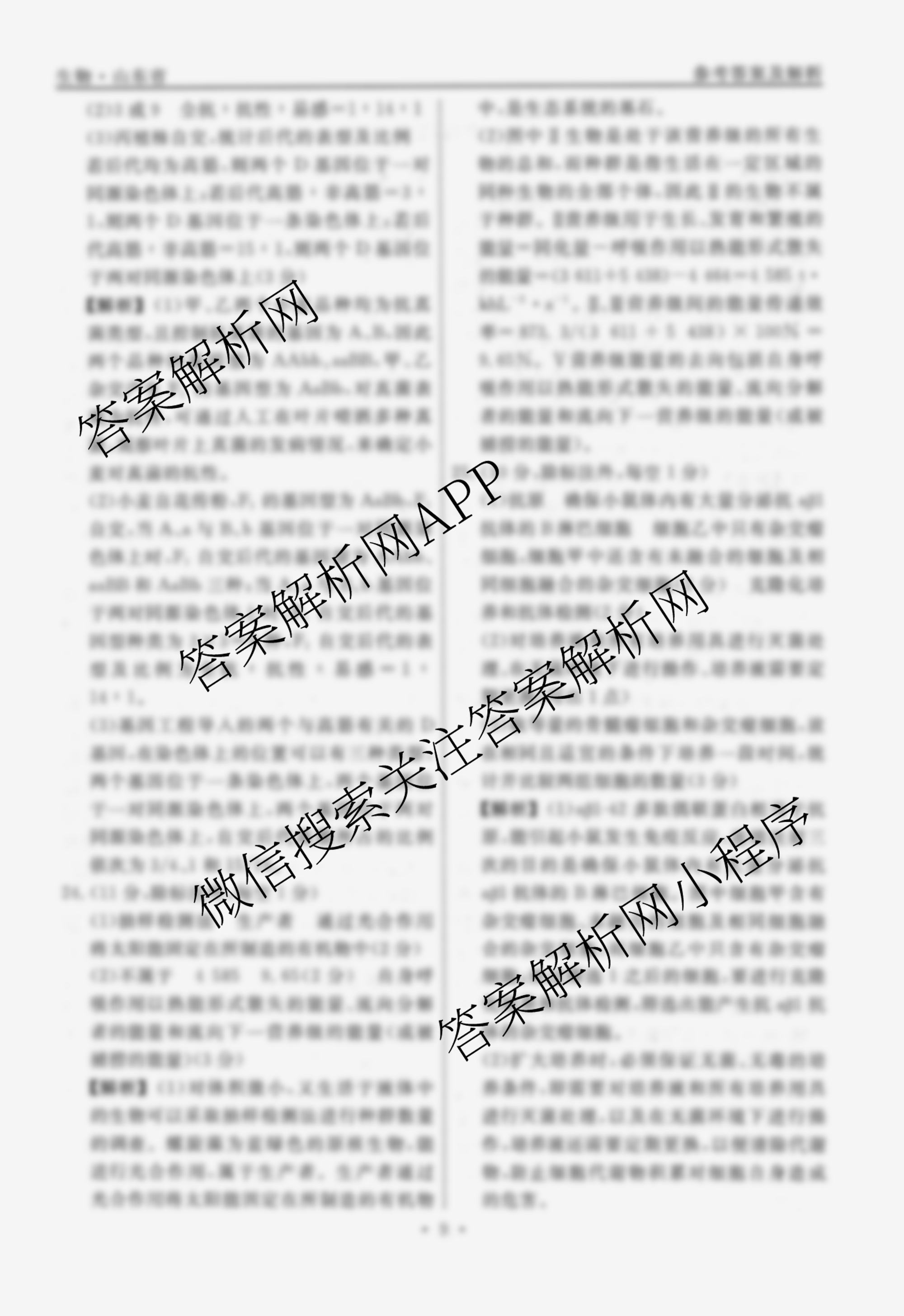 衡水名师卷高考模拟信息卷 2024年全省普通高中学业水平等级考试模拟 生物(空心◇山东省)(二)2答案