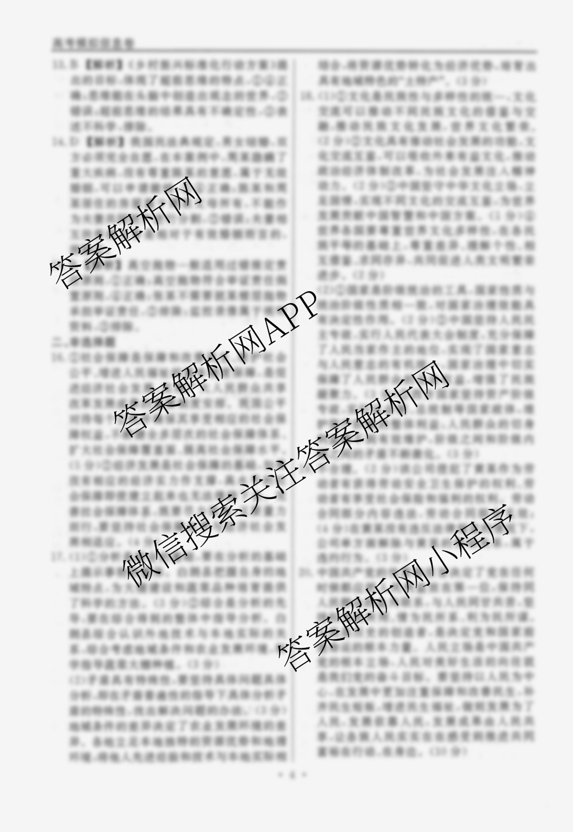 衡水名师卷高考模拟信息卷 2024年全省普通高中学业水平等级考试模拟 政治(空心◇山东省)(二)2答案