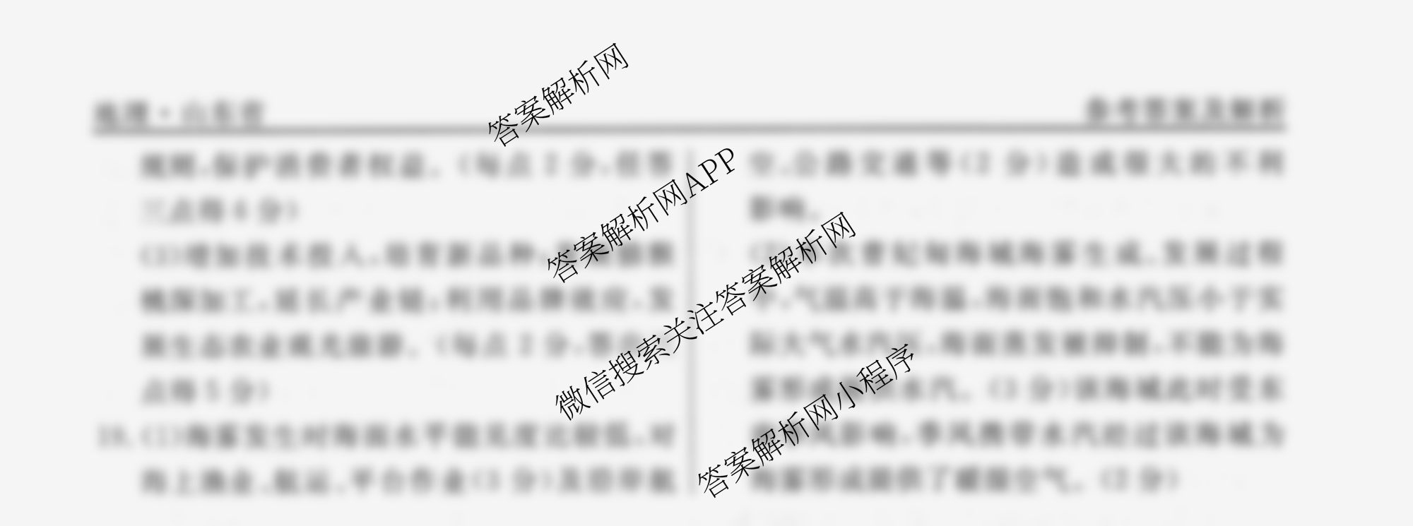 - 高三[衡水名师卷]·高考模拟信息卷 2024年全省普通高中学业水平等级考试模拟 地理(空心◇山东省)(一)1答案