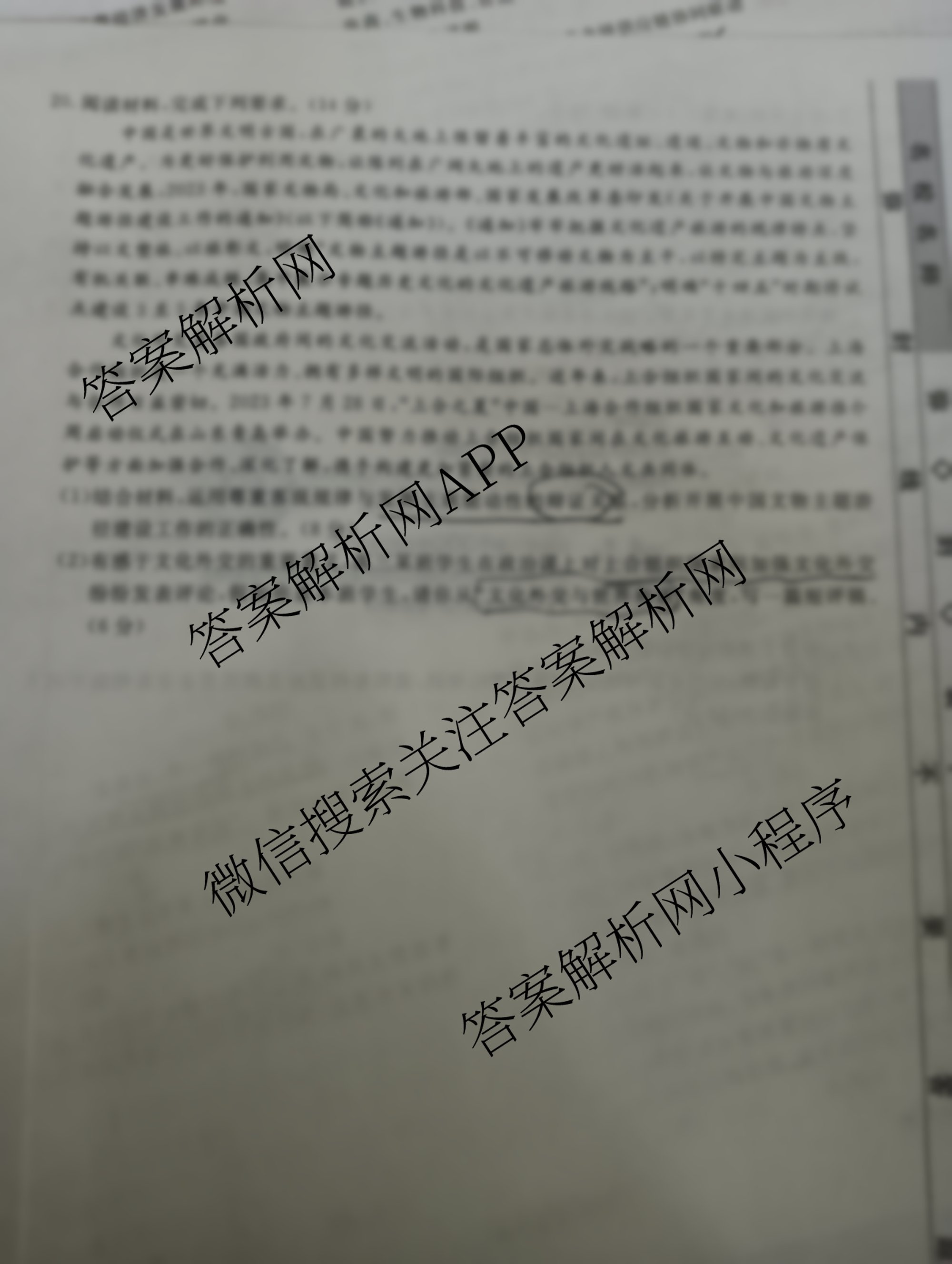 - 高三[衡水名师卷]·高考模拟调研卷 2024年普通高等学校招生全国统一考试模拟试题 文综(实心◇)(五)5答案