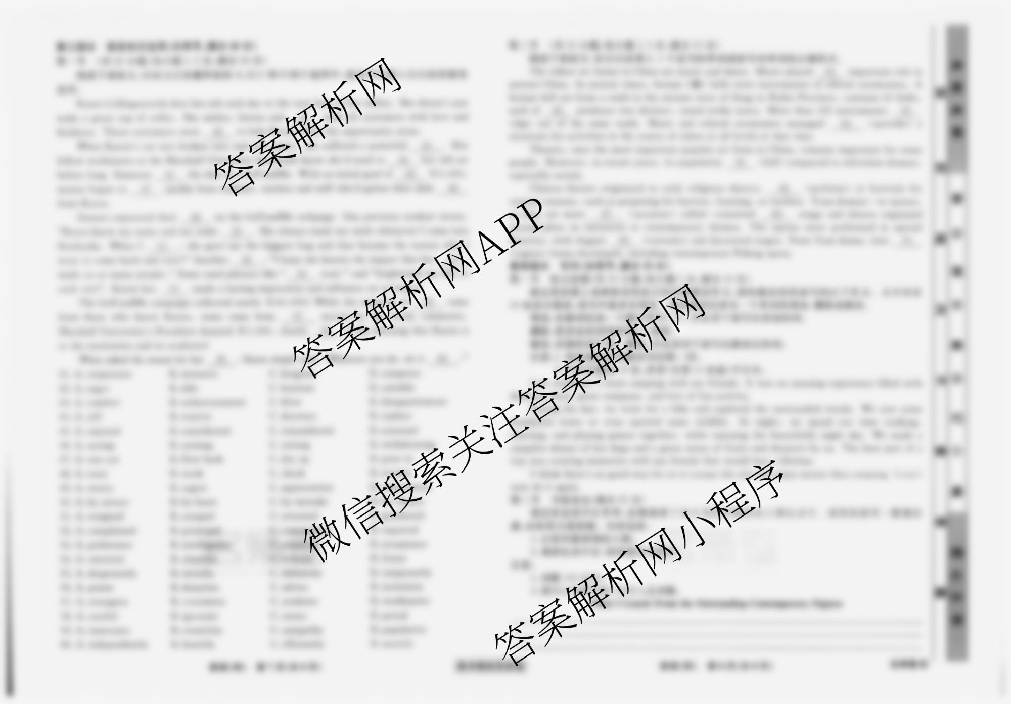 衡水名师卷高考模拟信息卷2024年普通高等学校招生全国统一考试模拟英语(实心◇老高考)(四)4试题