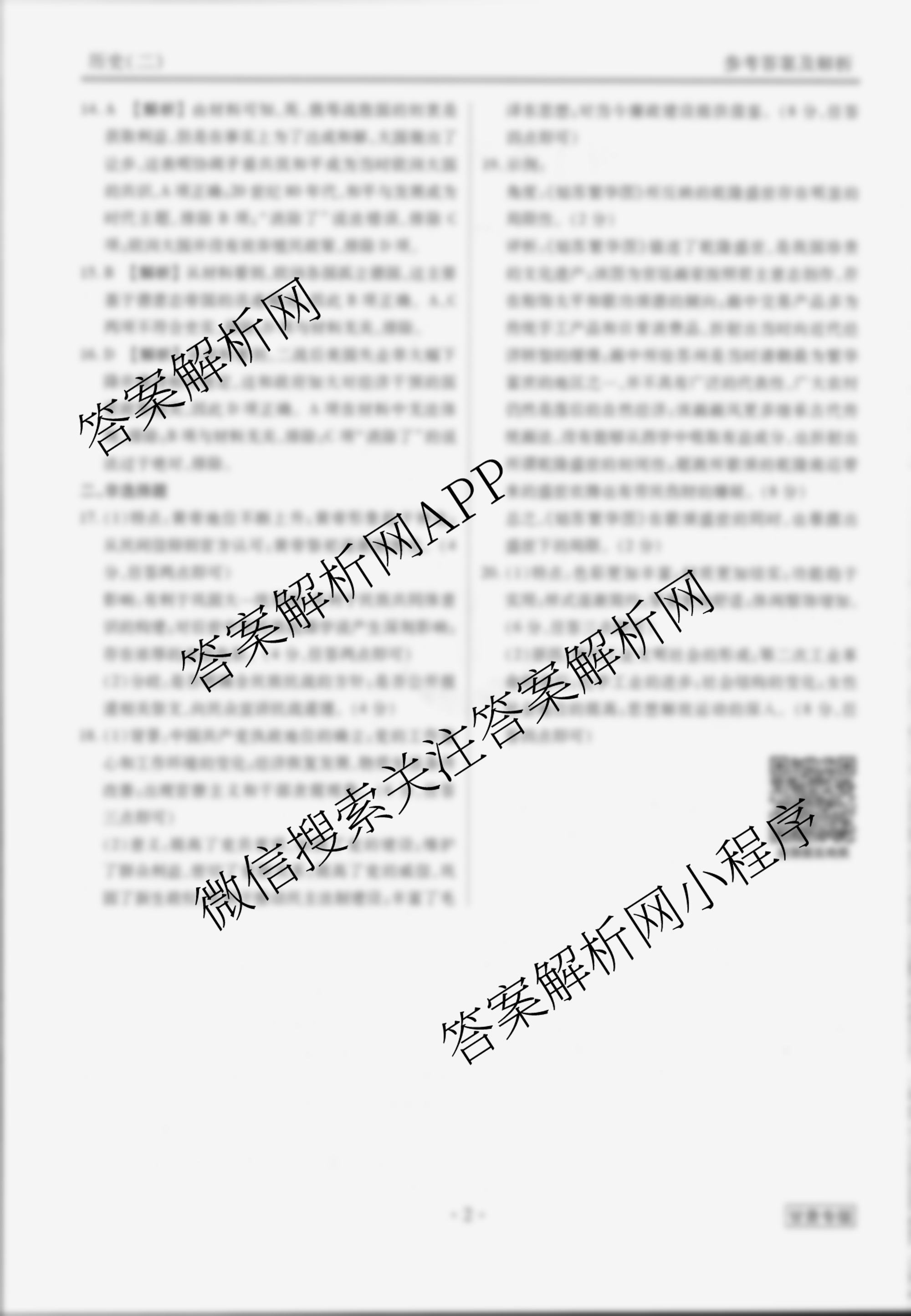 - [衡水金卷先享题]调研卷 2024年普通高中学业水平选择性考试模拟试题(二)2历史(安徽专版)答案