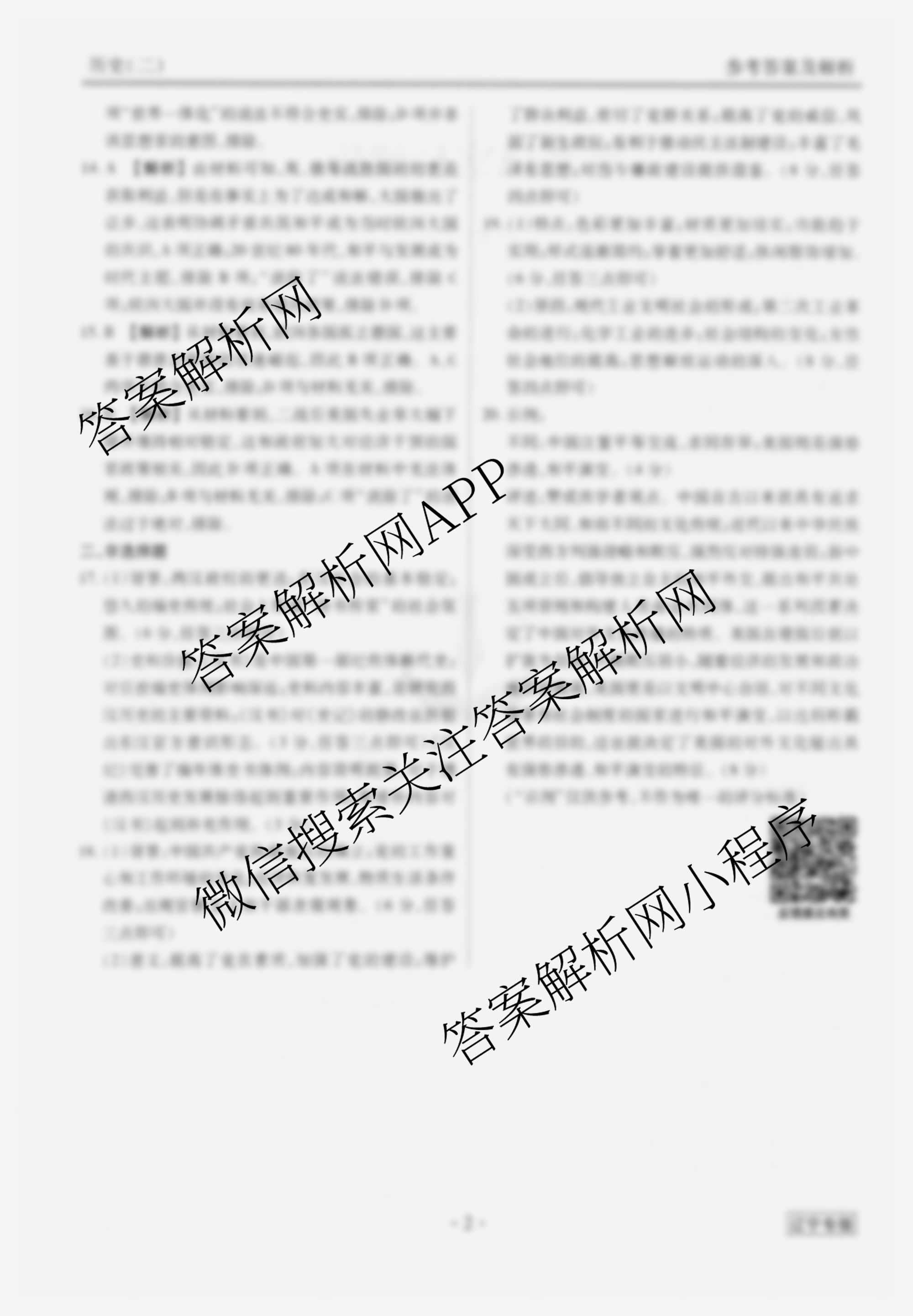 - [衡水金卷先享题]·调研卷 2024年普通高中学业水平选择性考试模拟试题(二)2历史(辽宁专版)答案