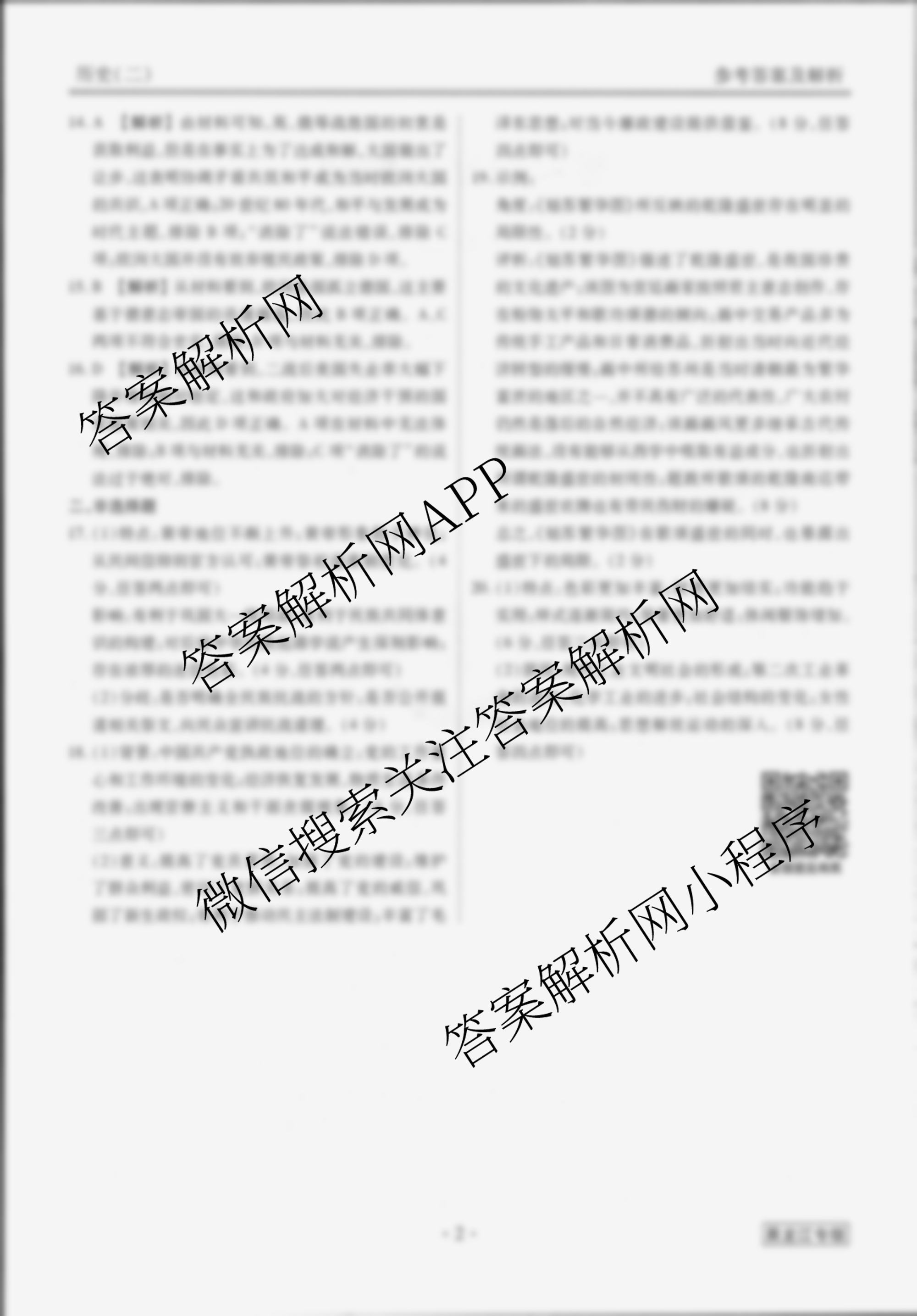 - [衡水金卷先享题]调研卷 2024年普通高中学业水平选择性考试模拟试题(二)2历史(安徽专版)答案