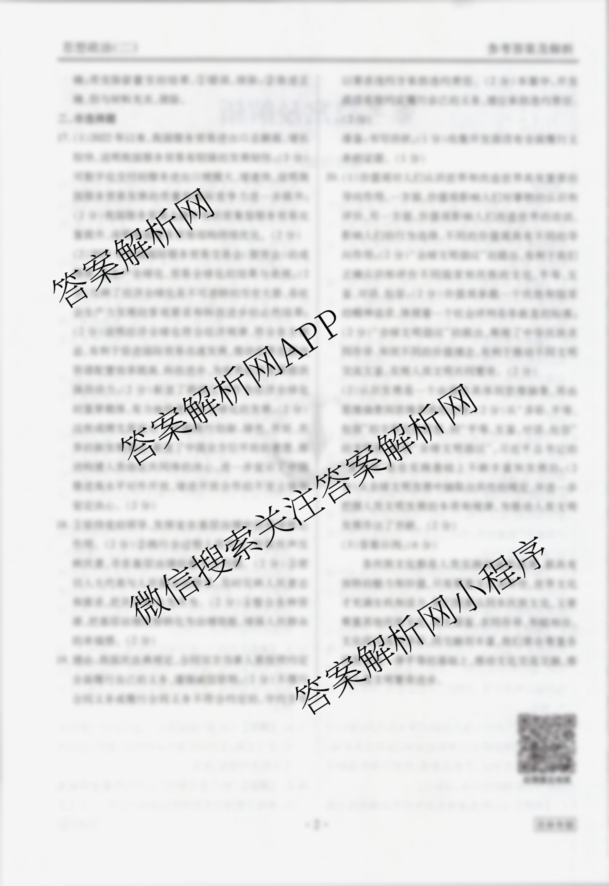 (高三)衡水金卷先享题调研卷 2024年普通高中学业水平选择性考试模拟试题(二)2政治(吉林专版)答案