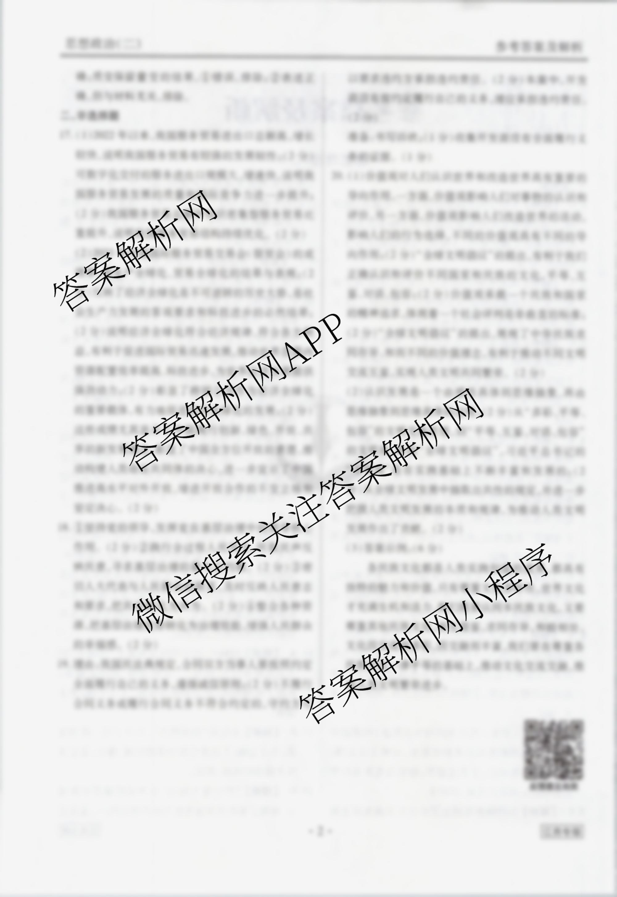 (高三)(衡水金卷先享题)·调研卷 2024年普通高中学业水平选择性考试模拟试题(二)2政治(江西专版)答案