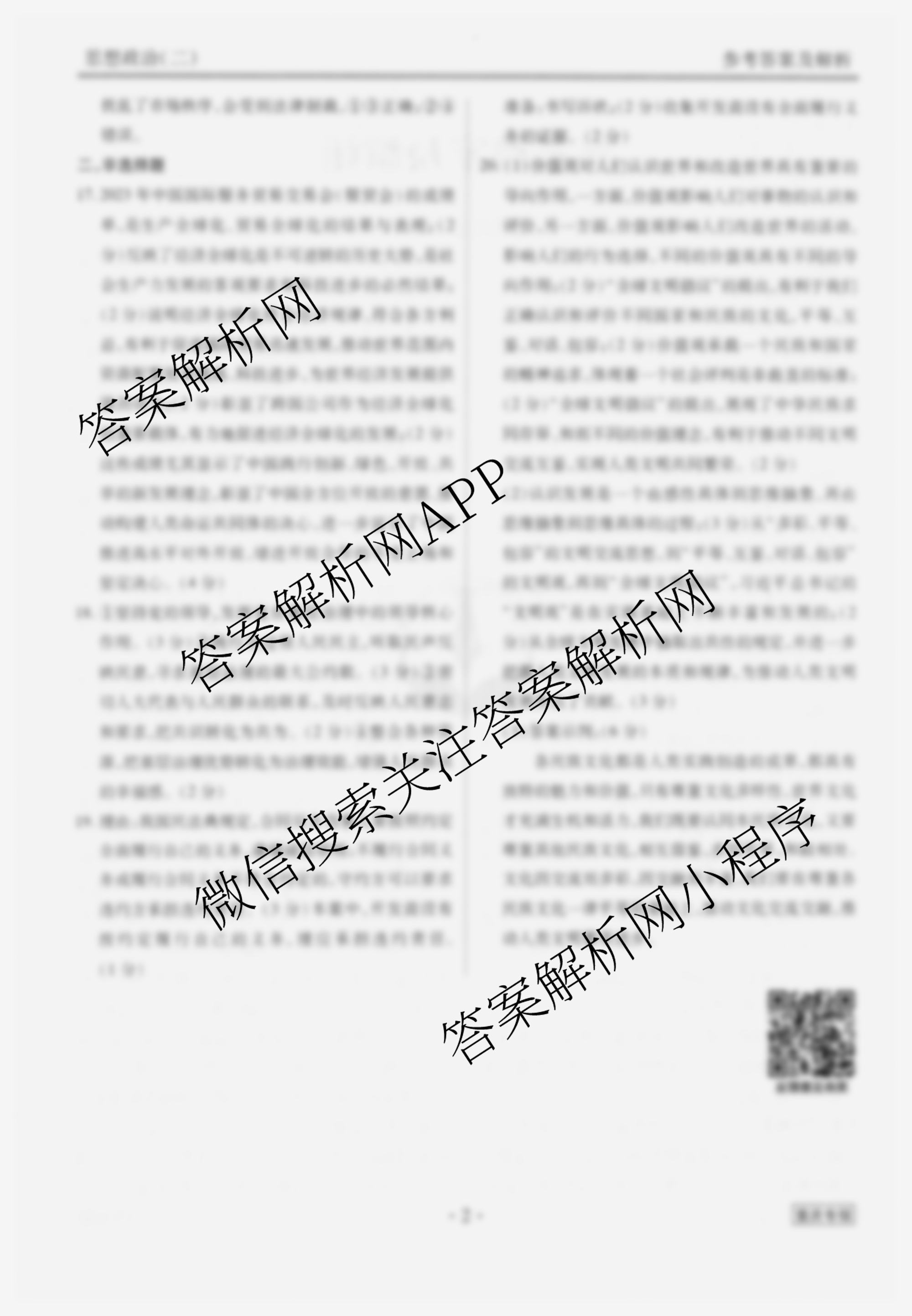 衡水金卷先享题·调研卷 2024年普通高中学业水平选择性考试模拟试题(二)2政治(重庆专版)答案