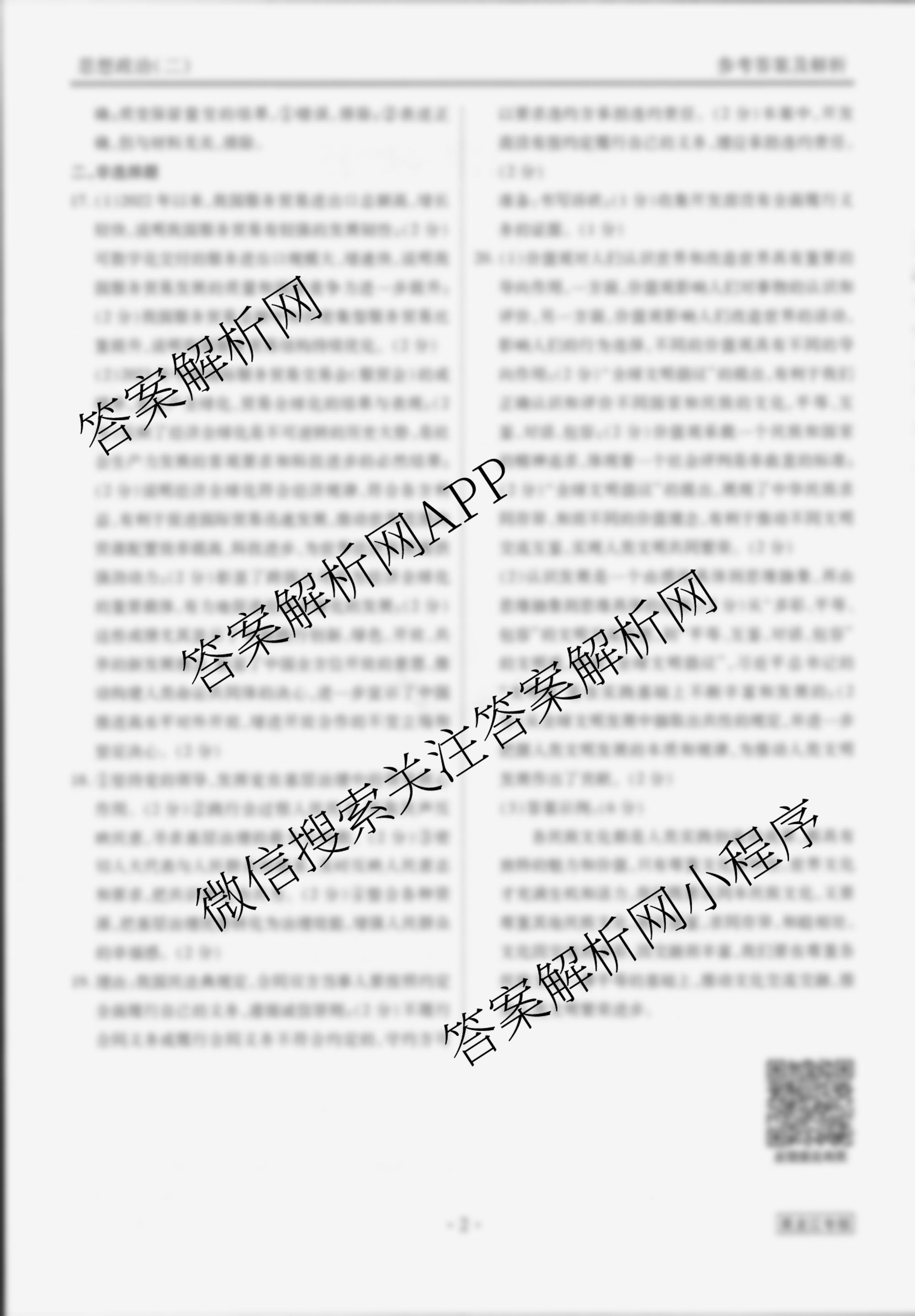 (衡水金卷先享题)调研卷 2024年普通高中学业水平选择性考试模拟试题(二)2政治(黑龙江专版)答案
