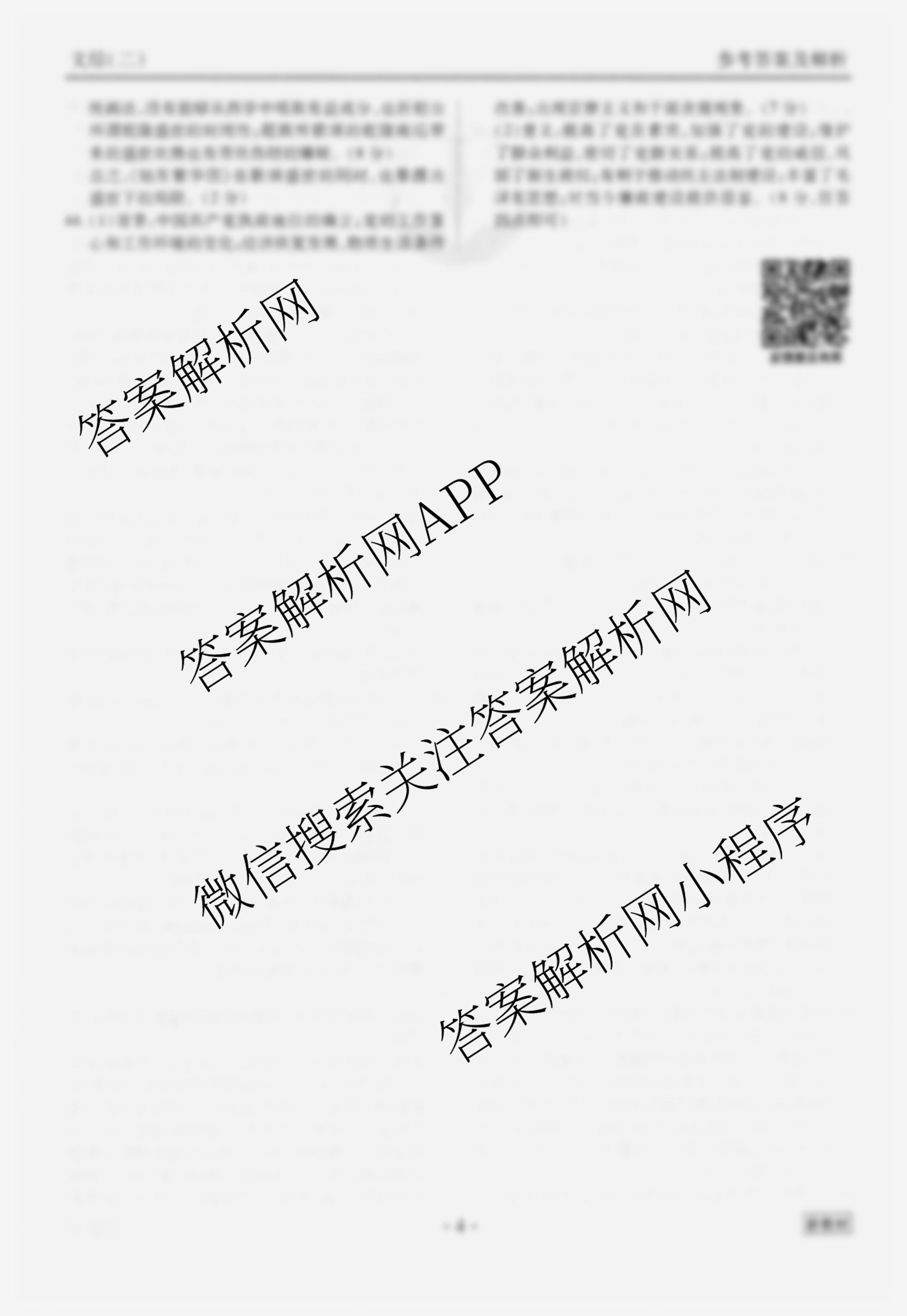 衡水金卷先享题·调研卷 2024年普通高等学校招生全国统一考试模拟试题(二)2文综(新教材)答案
