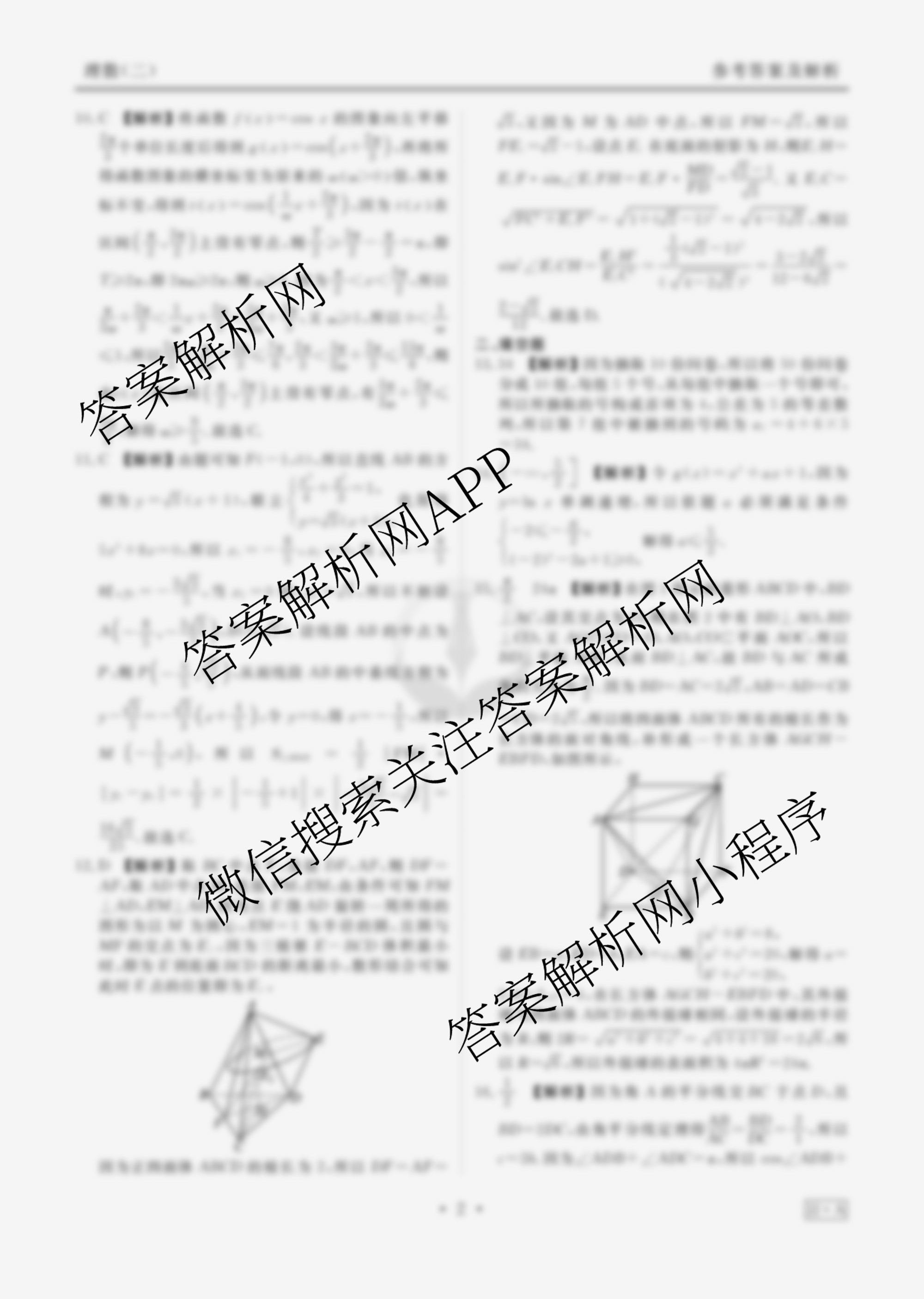 (衡水金卷先享题)调研卷 2024年普通高等学校招生全国统一考试模拟试题(二)2理数(JJA)答案