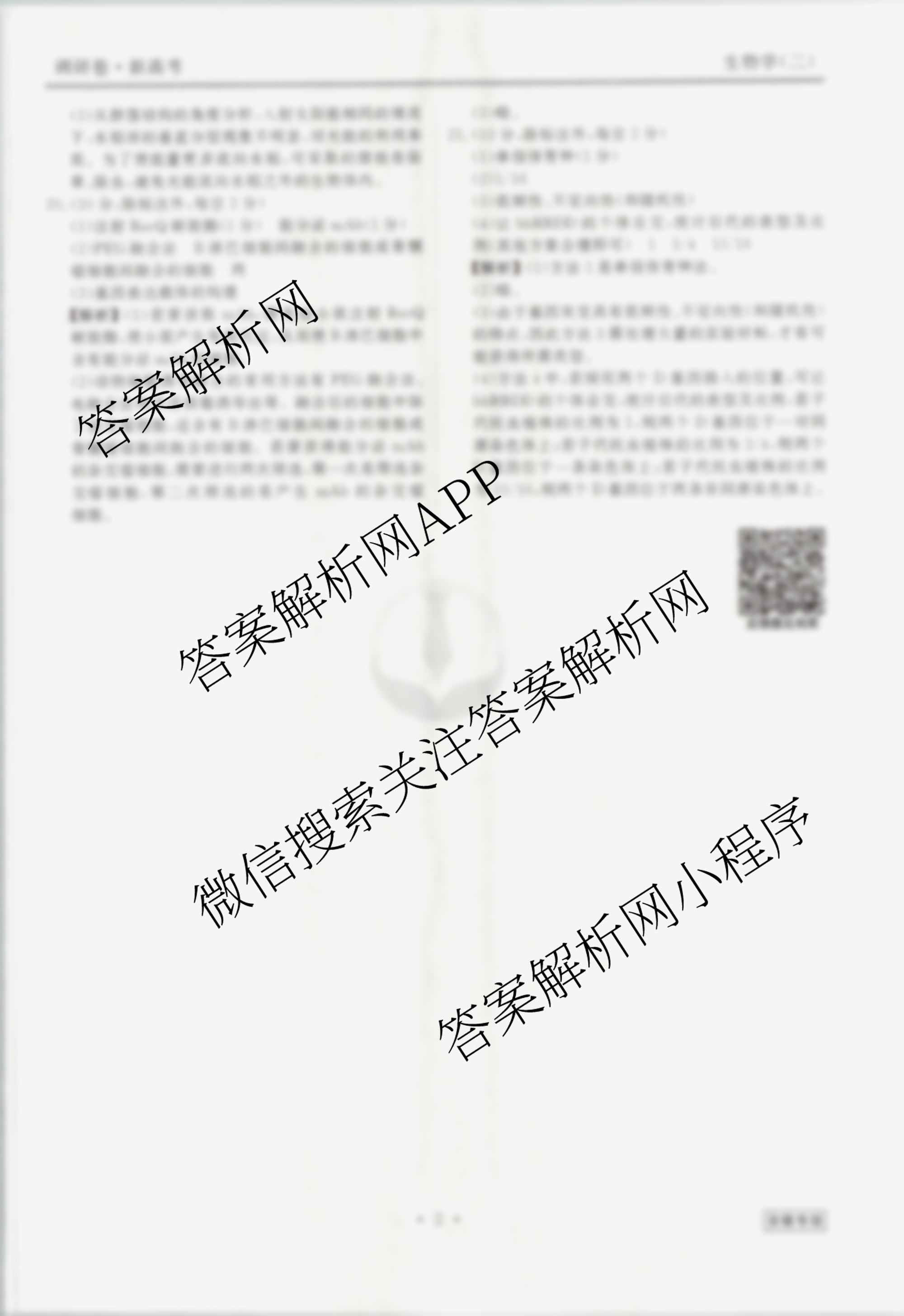 [高三](衡水金卷先享题)调研卷 2024年普通高中学业水平选择性考试模拟试题(二)2生物(安徽专版)答案