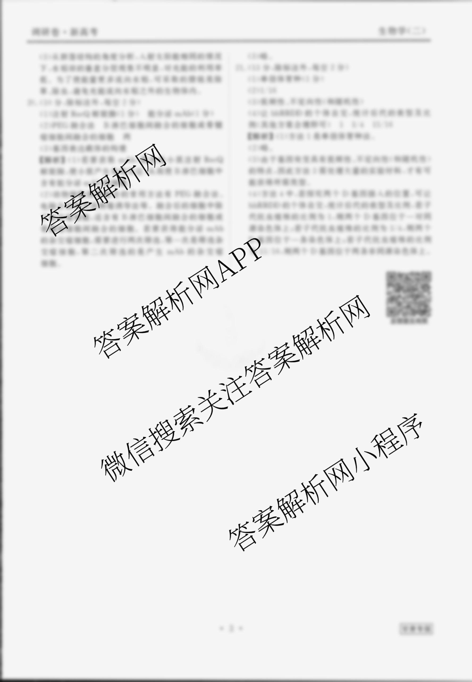 衡水金卷先享题·调研卷 2024年普通高中学业水平选择性考试模拟试题(二)2生物(甘肃专版)答案,目前衡水试卷网已经汇总了衡水金卷先享题·调研卷 2024年普通高中学业水平选择性考试模拟试题(二)2生物(甘肃专版)答案的各科答案和试卷,获取更多衡水金卷先享题答案解析,请在关注本站。