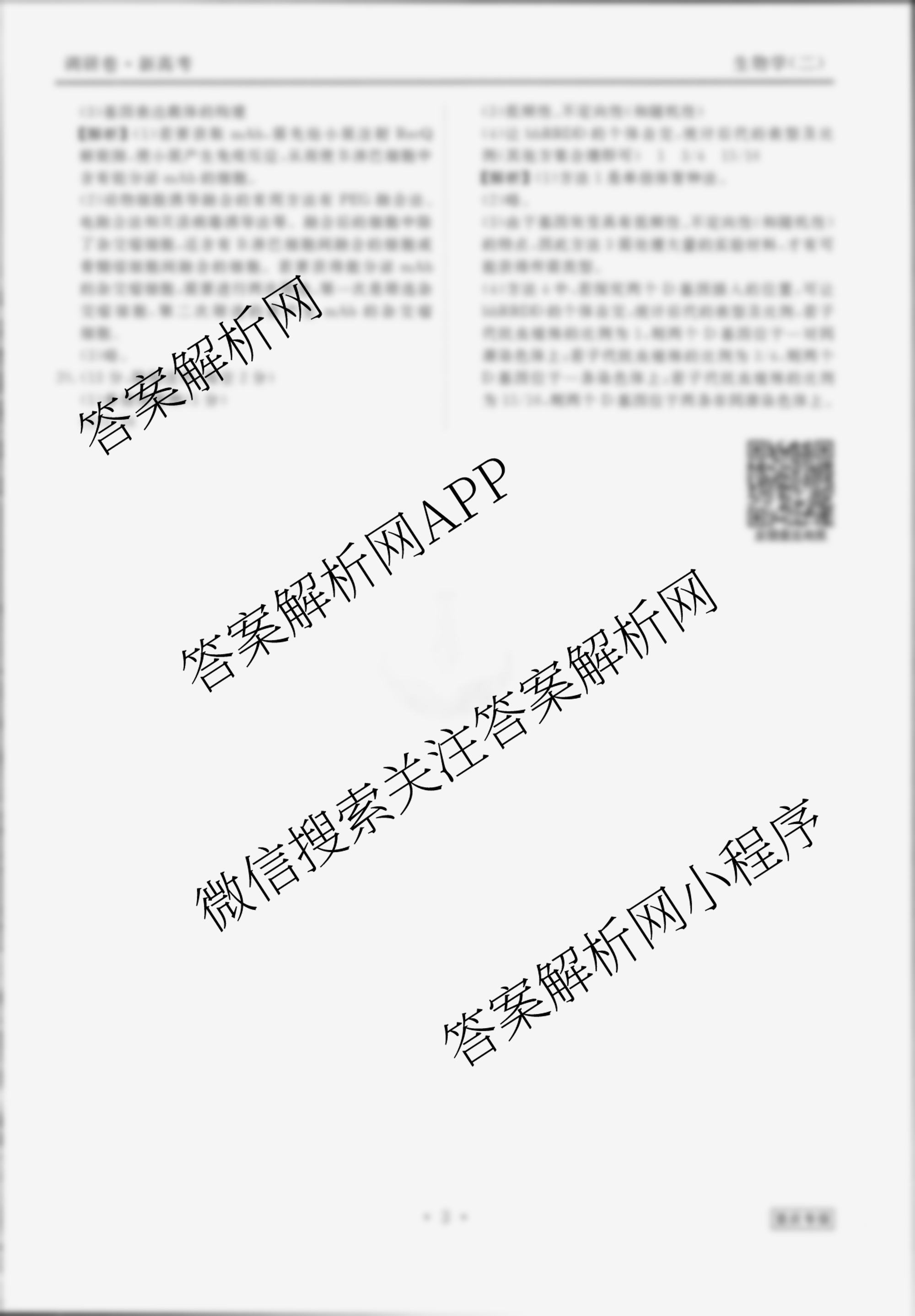 (高三)衡水金卷先享题调研卷 2024年普通高中学业水平选择性考试模拟试题(二)2生物(重庆专版)答案