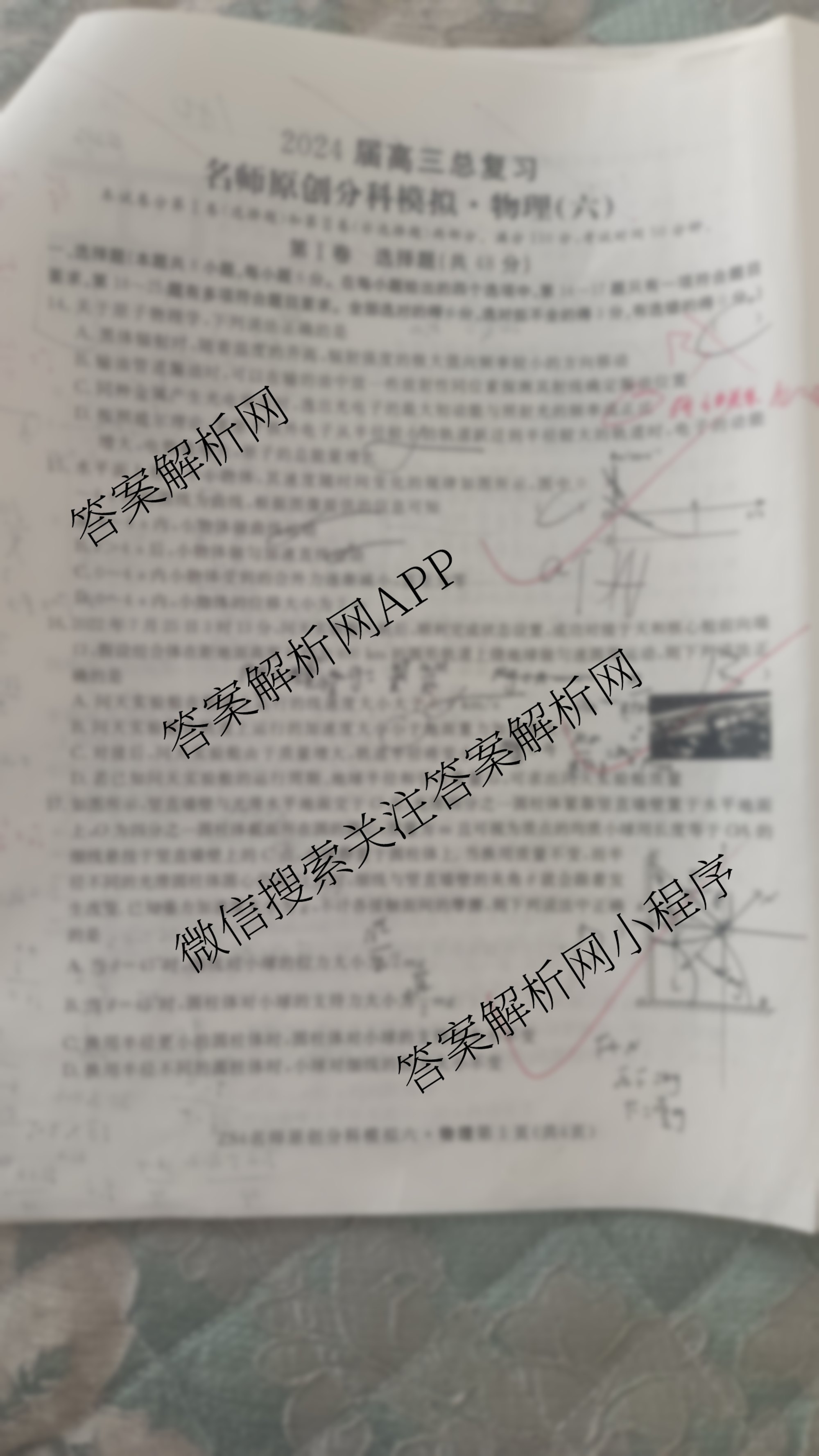 - [高三]2024届总复习名师原创分科模拟 物理(ZS4)(六)6答案
