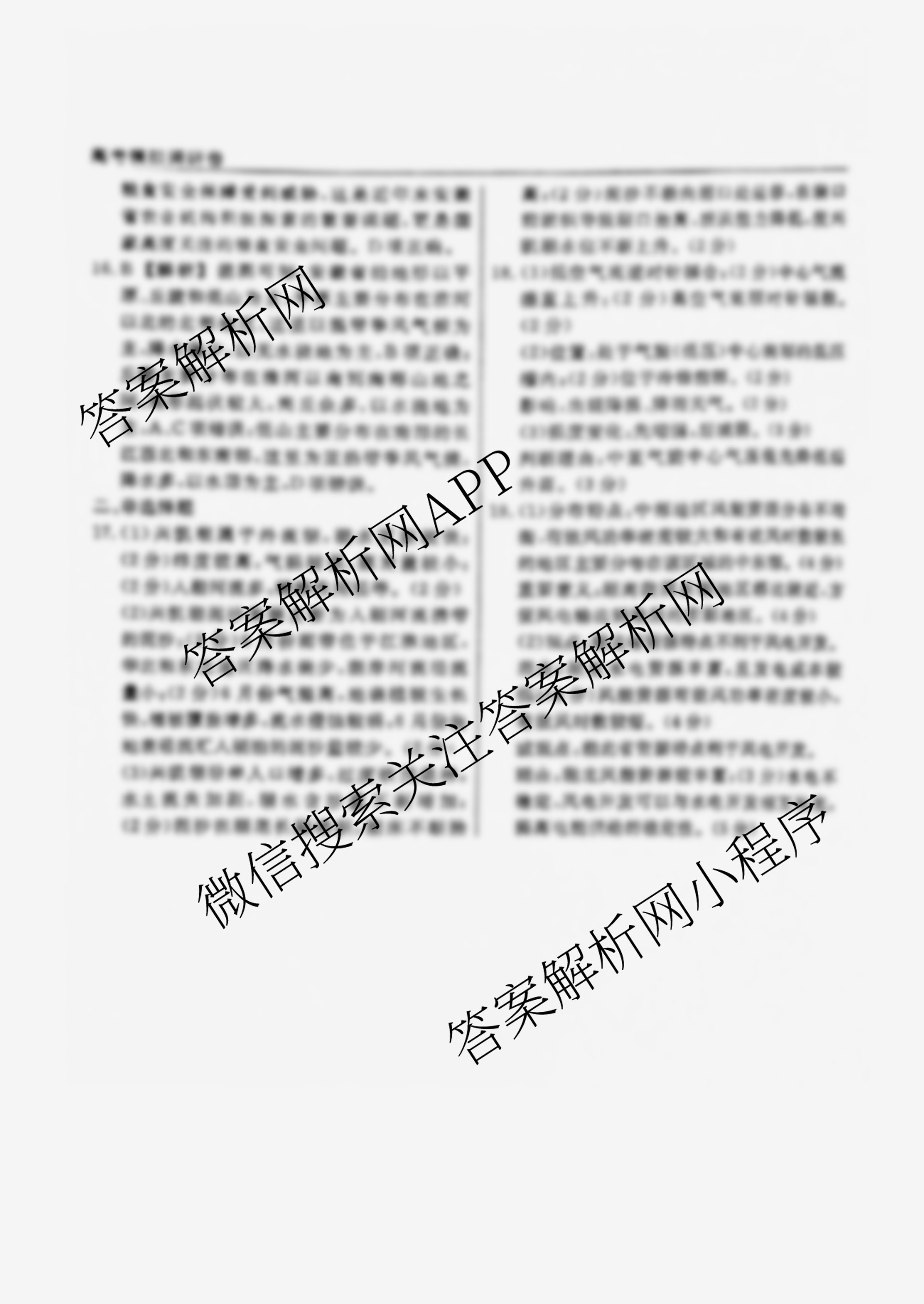 - (高三)(衡水名师卷)·高考模拟调研卷 2024年普通高中学业水平选择性考试模拟试题 地理(菱形圆点)(一)1答案