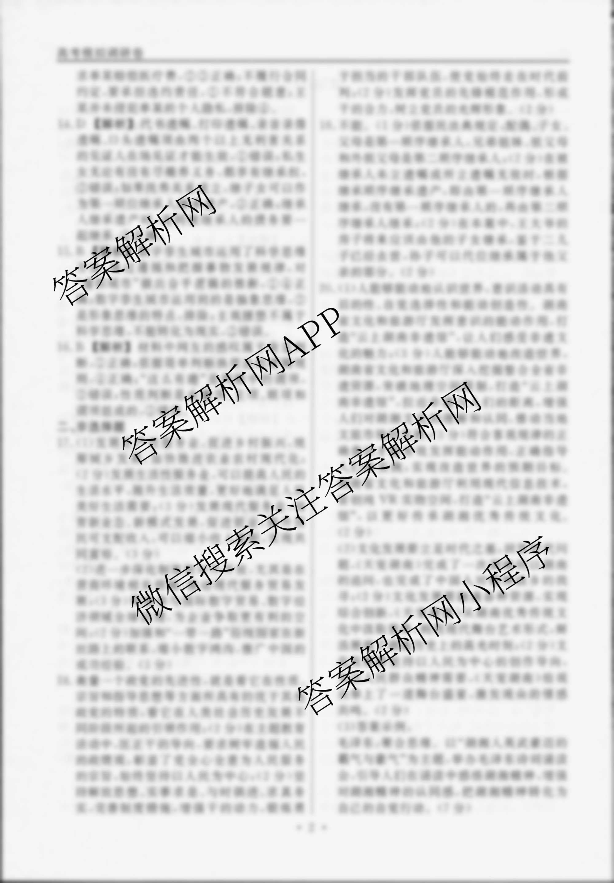 - 高三[衡水名师卷]高考模拟调研卷 2024年普通高中学业水平选择性考试模拟试题 政治(双菱形)(一)1答案