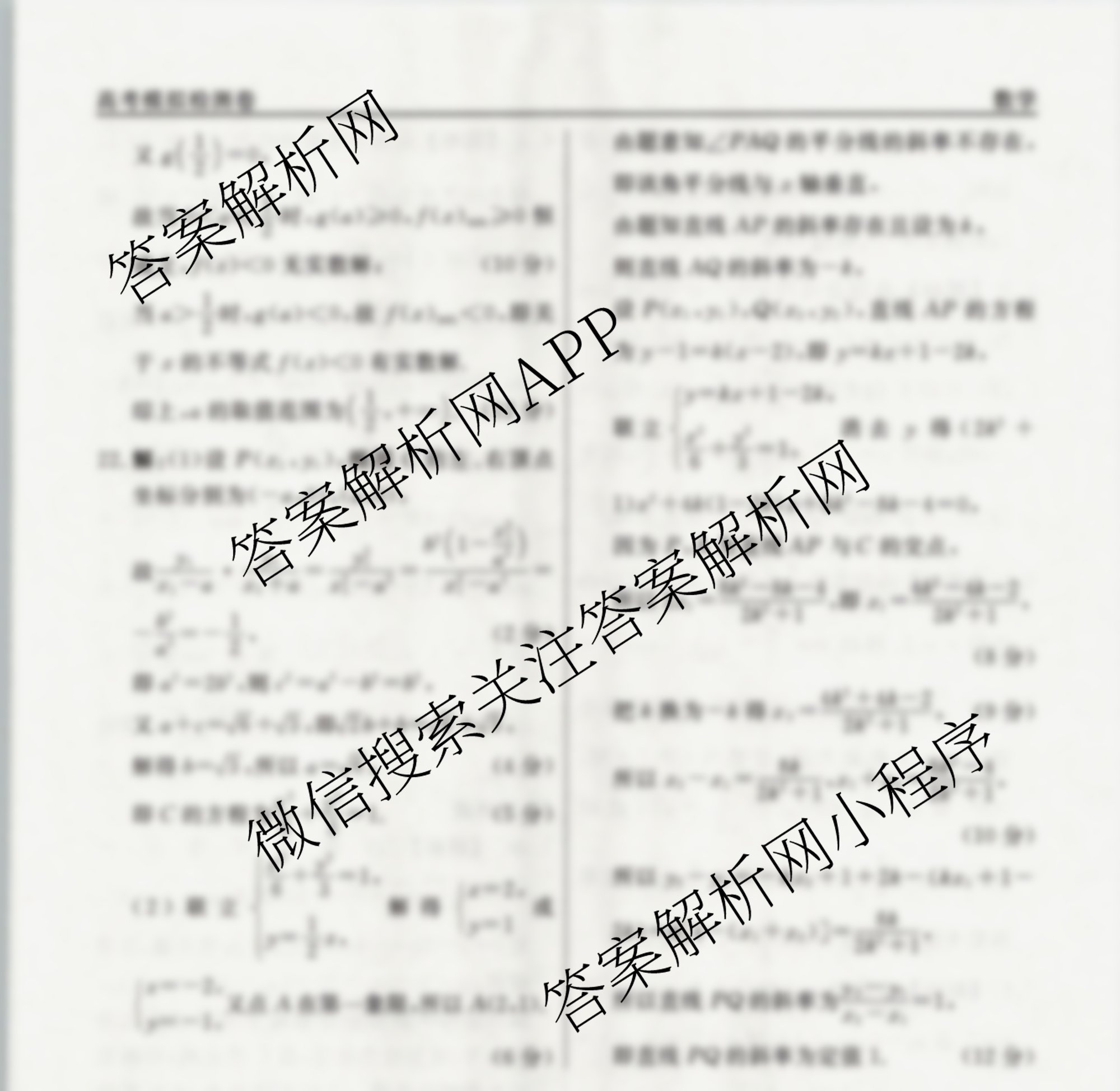 - [衡水名师卷]·高考模拟检测卷 2024年普通高等学校招生全国统一考试模拟试题 数学(一)1答案