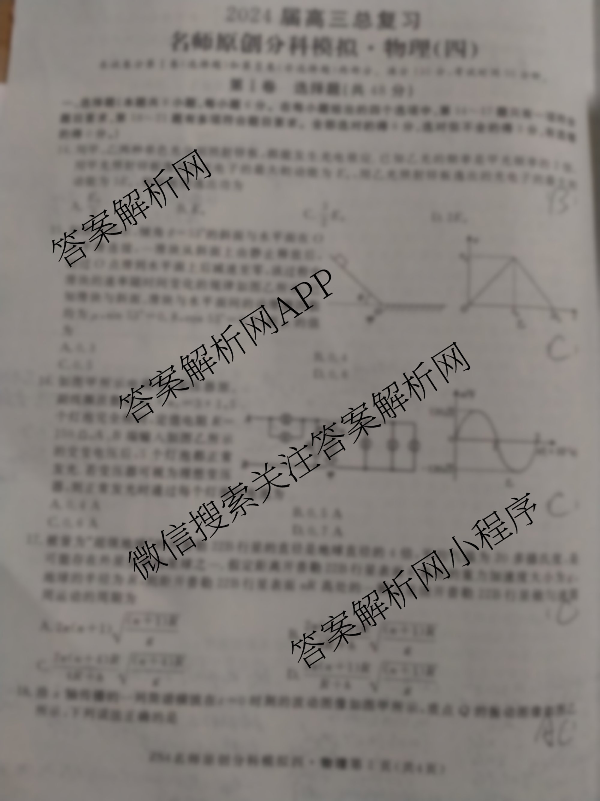 - (高三)2024届总复习名师原创分科模拟 物理(S4)(四)4答案