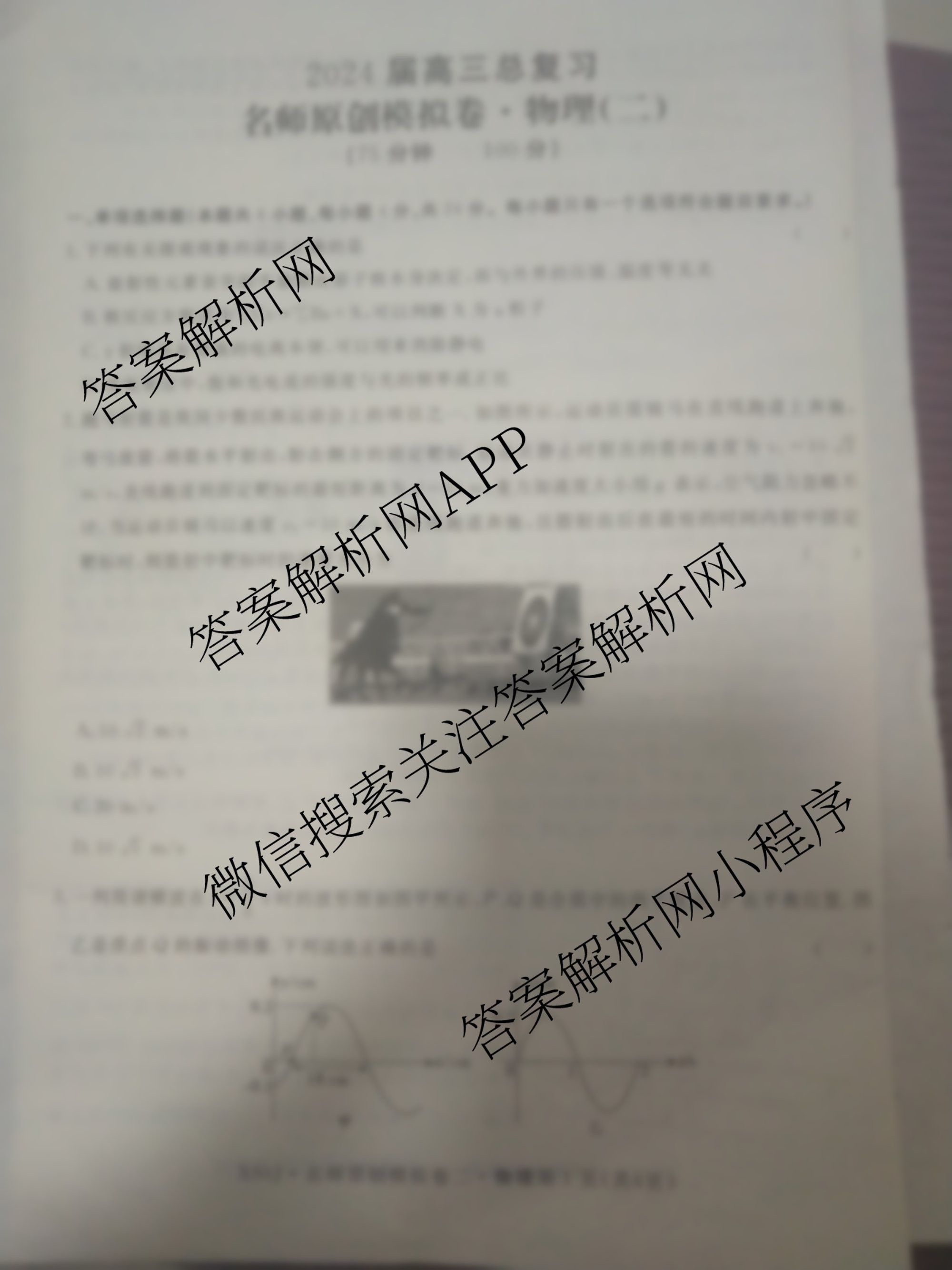 - (高三)2024届总复习·名师原创分科模拟 物理(S4)(二)2答案