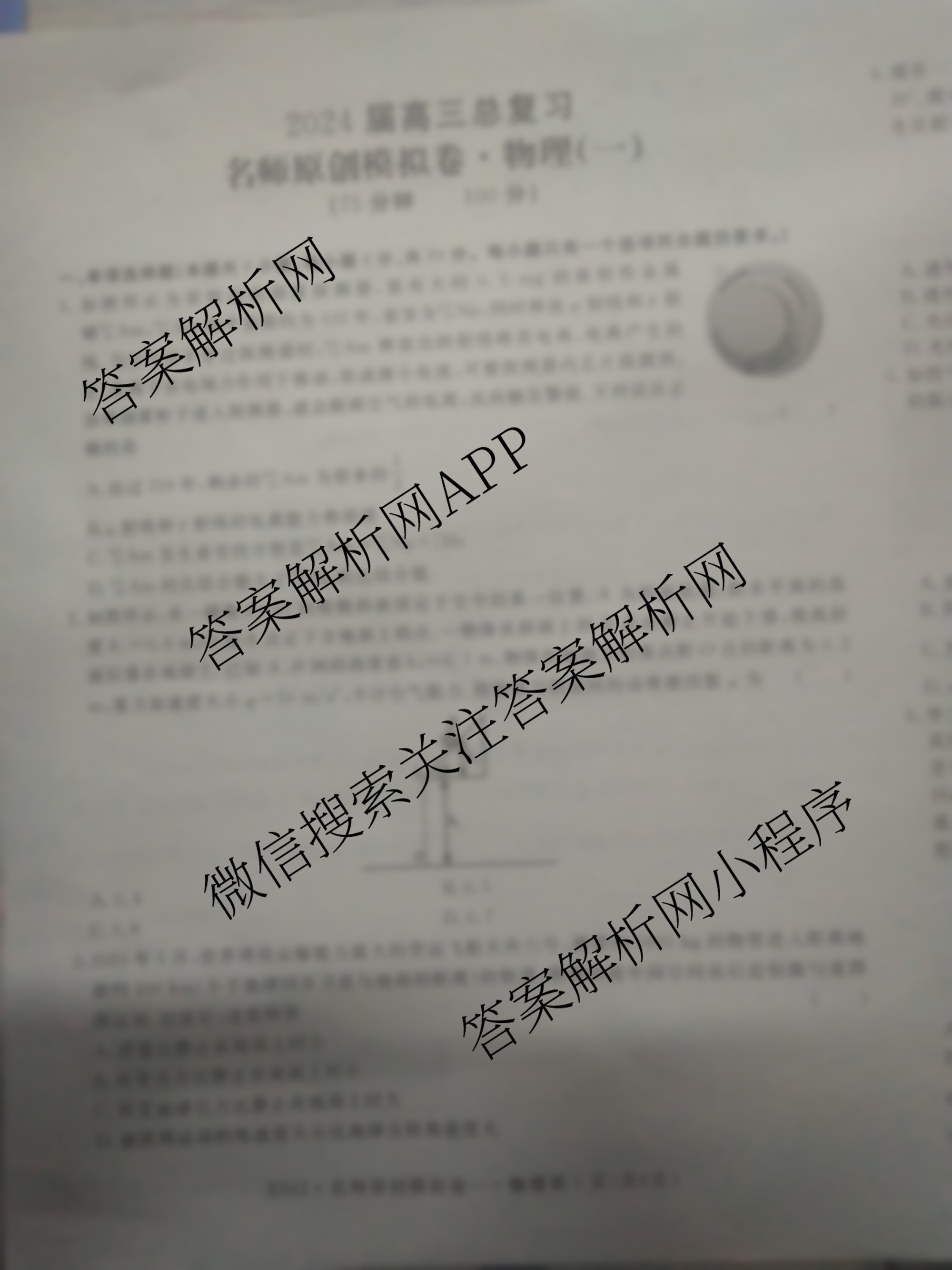 - 高三2024届总复习名师原创分科模拟 物理(S4)(一)1答案