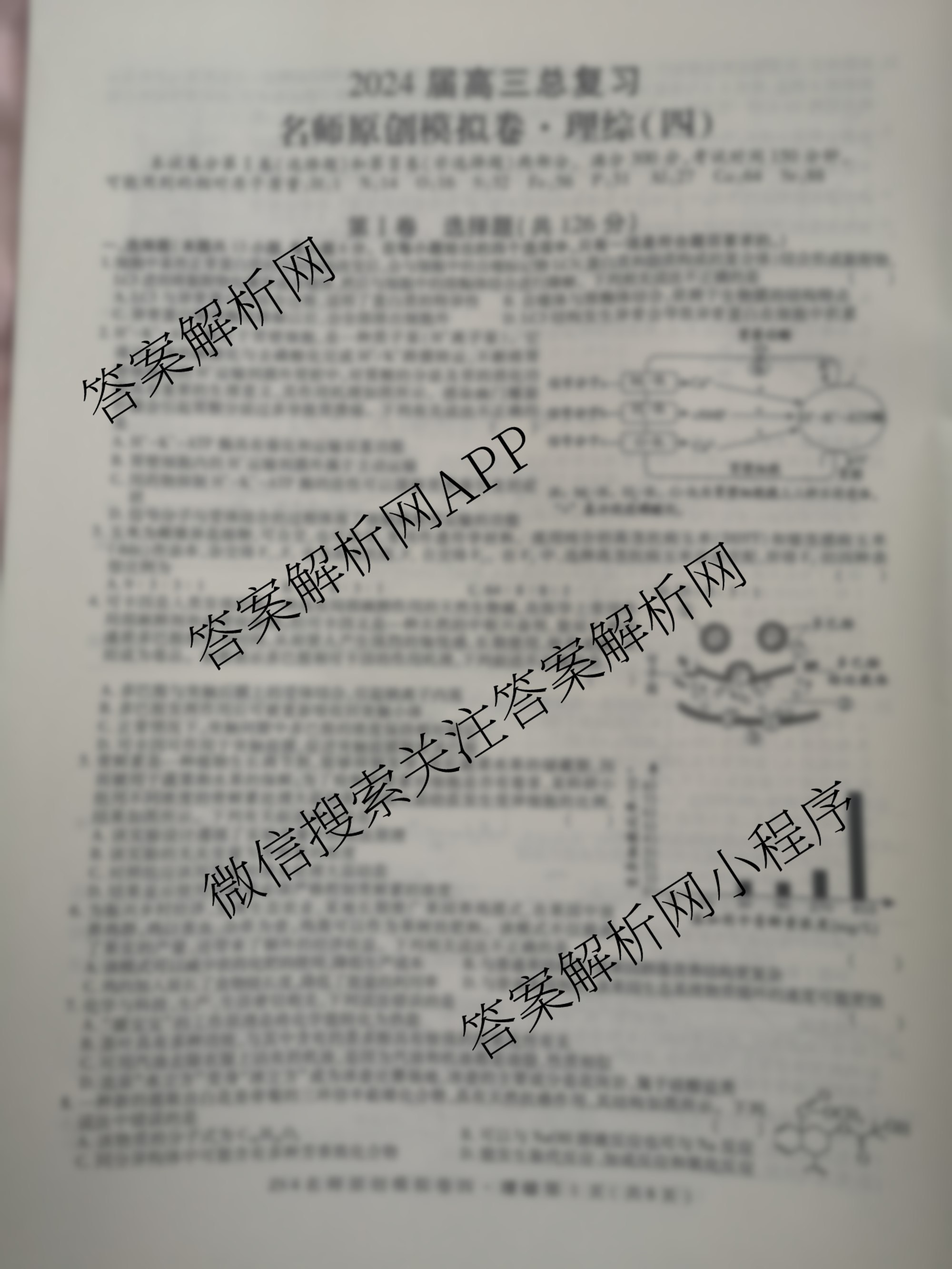 - 2024届(高三)(总复习·名师原创模拟)卷 理综(S4)(四)4试题