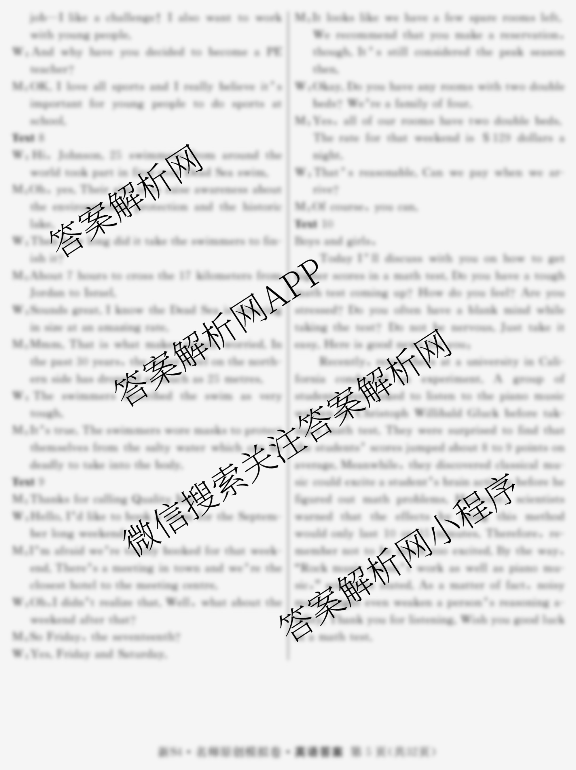 - 2024届[高三总复习名师原创模拟] 英语(S4)(一)1答案