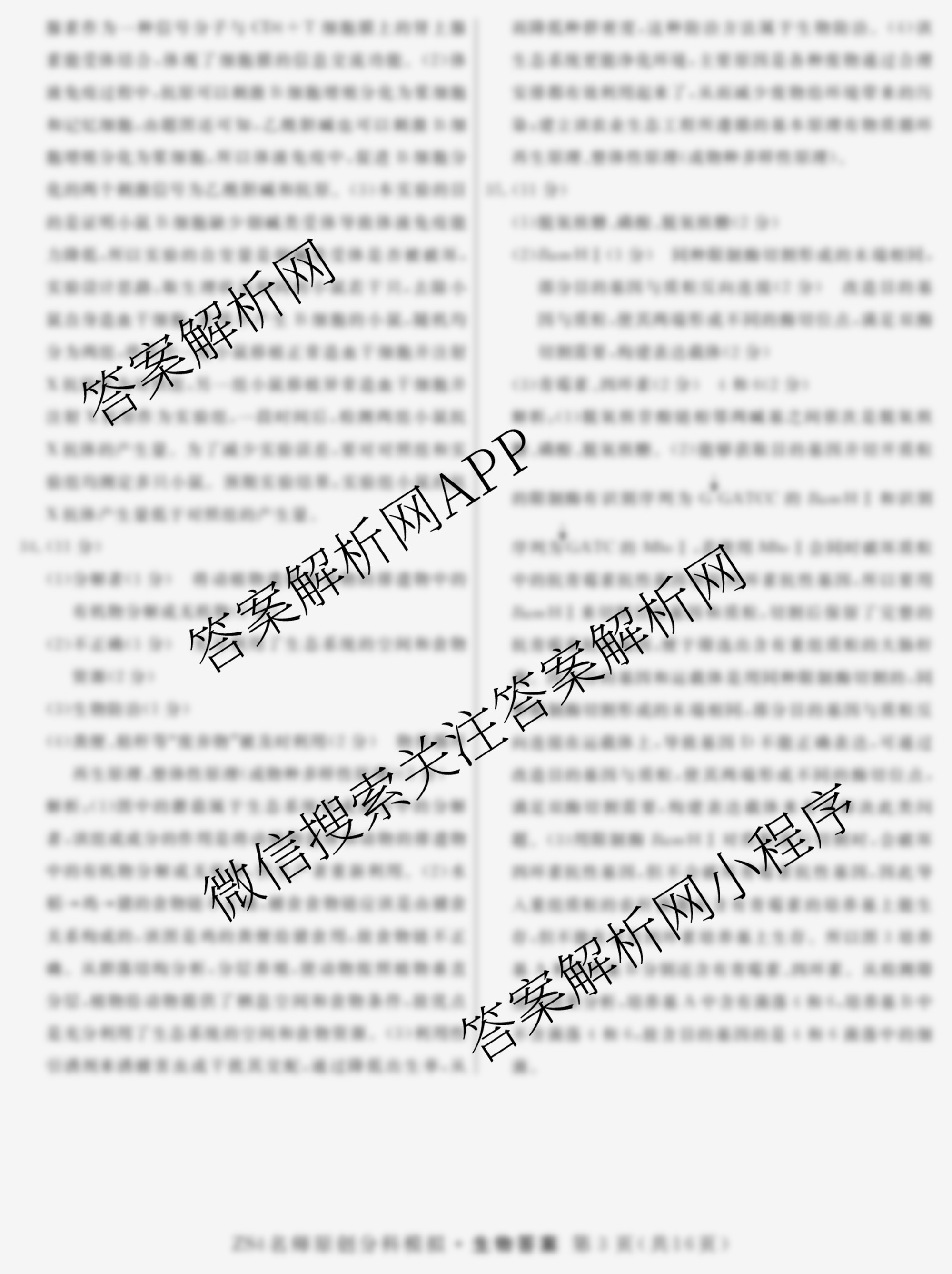 - 2024届(高三)总复习名师原创分科模拟 生物(ZS4)(一)1答案