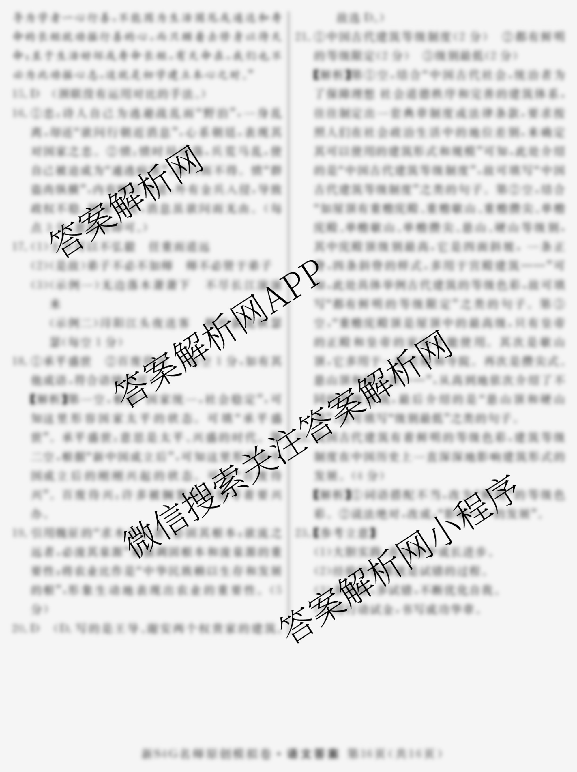 - [高三]2024届(总复习·名师原创模拟) 语文(S4)(六)6答案