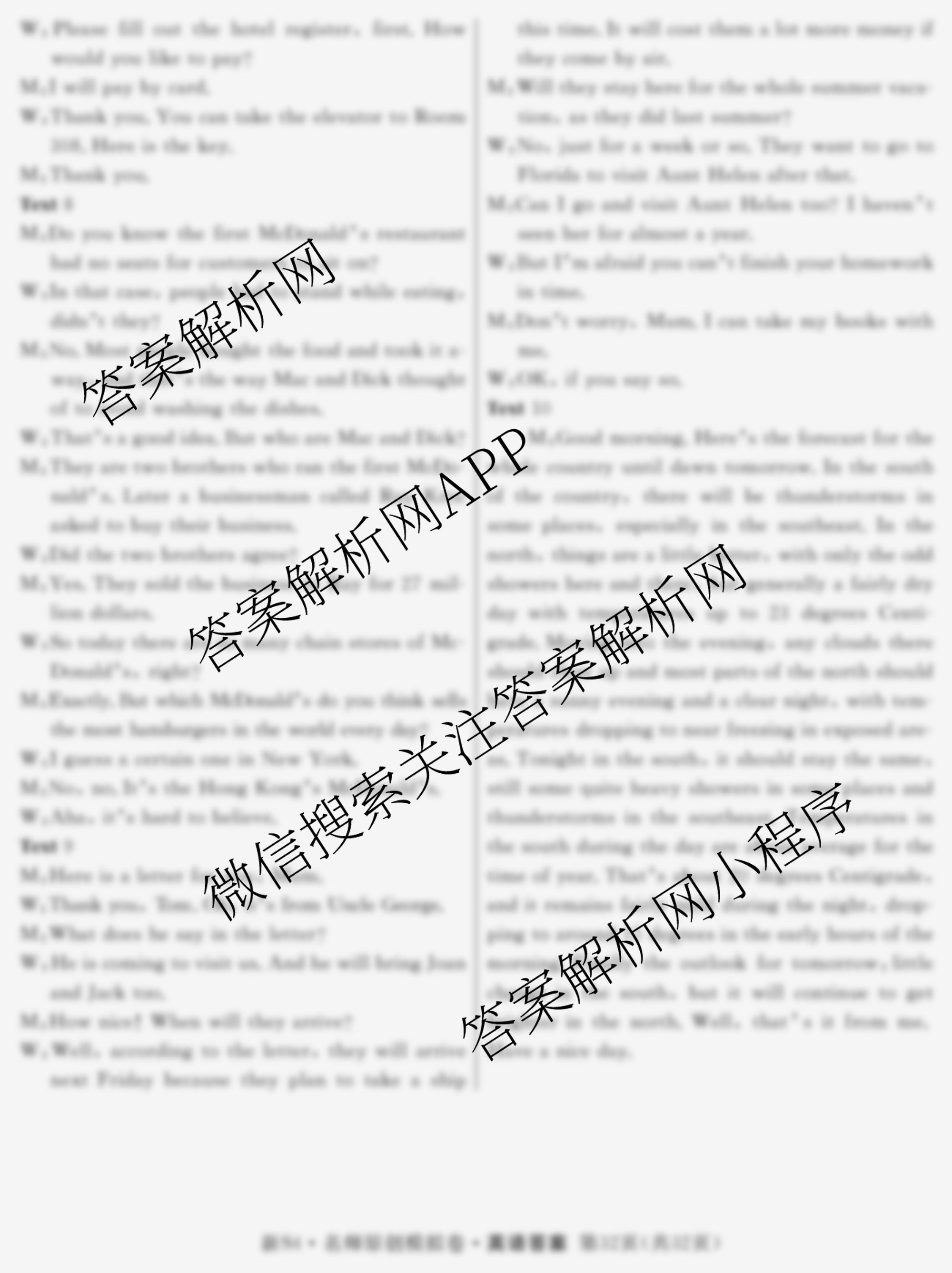 2024届[[高三]总复习名师原创模拟] 英语(新S4)(六)6答案