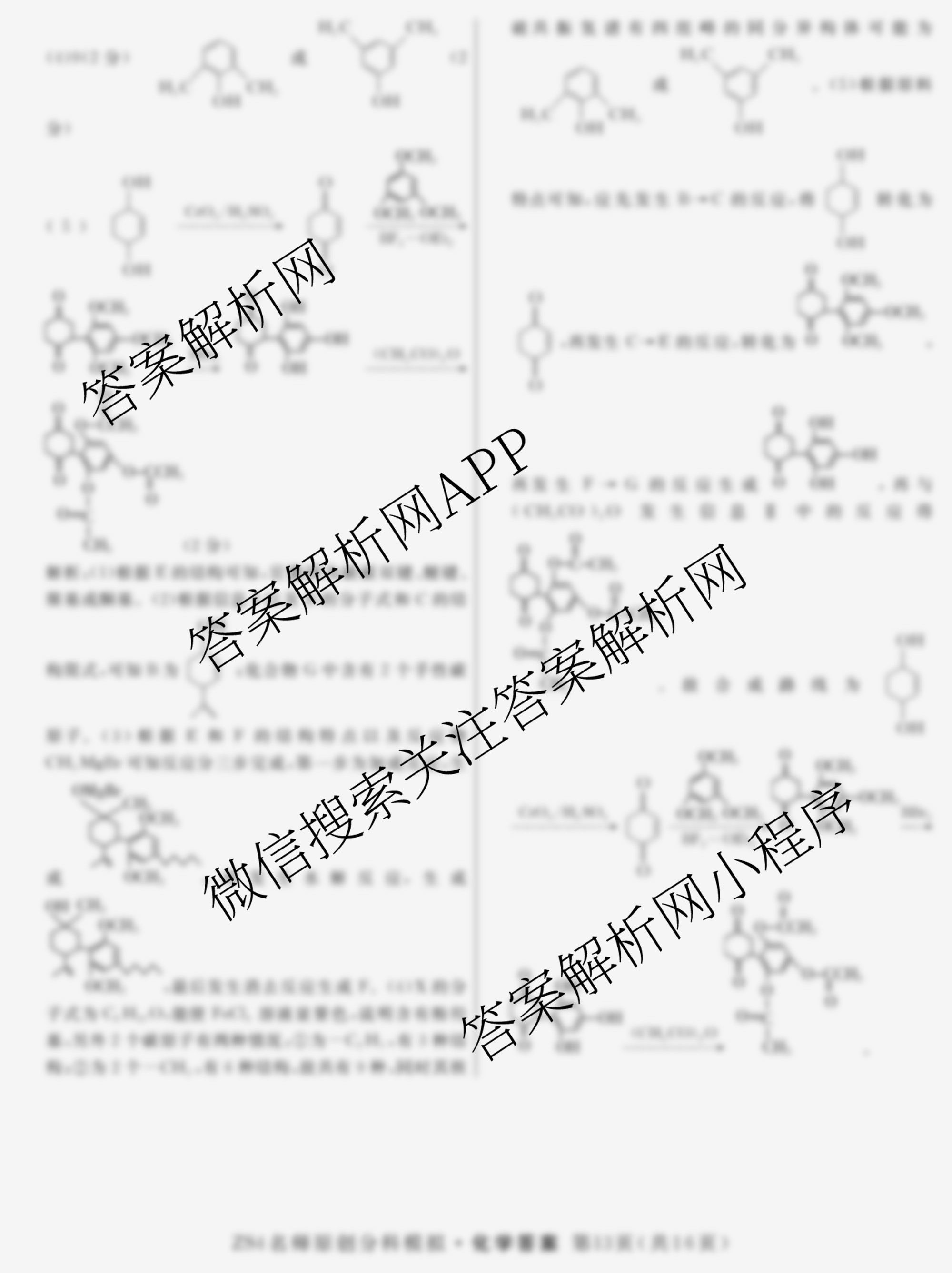 - [高三]2024届总复习·名师原创分科模拟 化学(ZS4)(五)5答案
