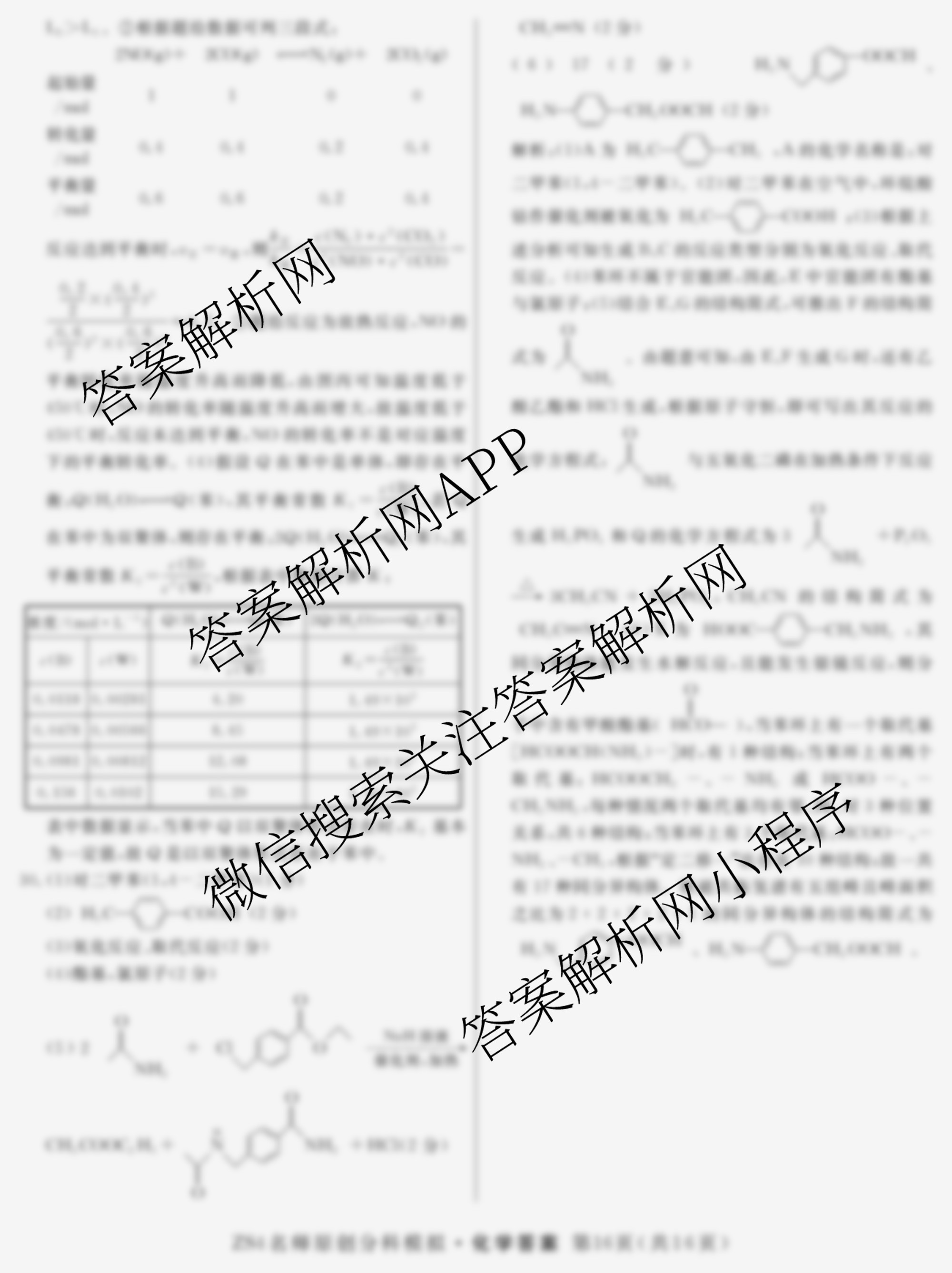 2024届[高三]总复习·名师原创分科模拟 化学(ZS4)(六)6答案