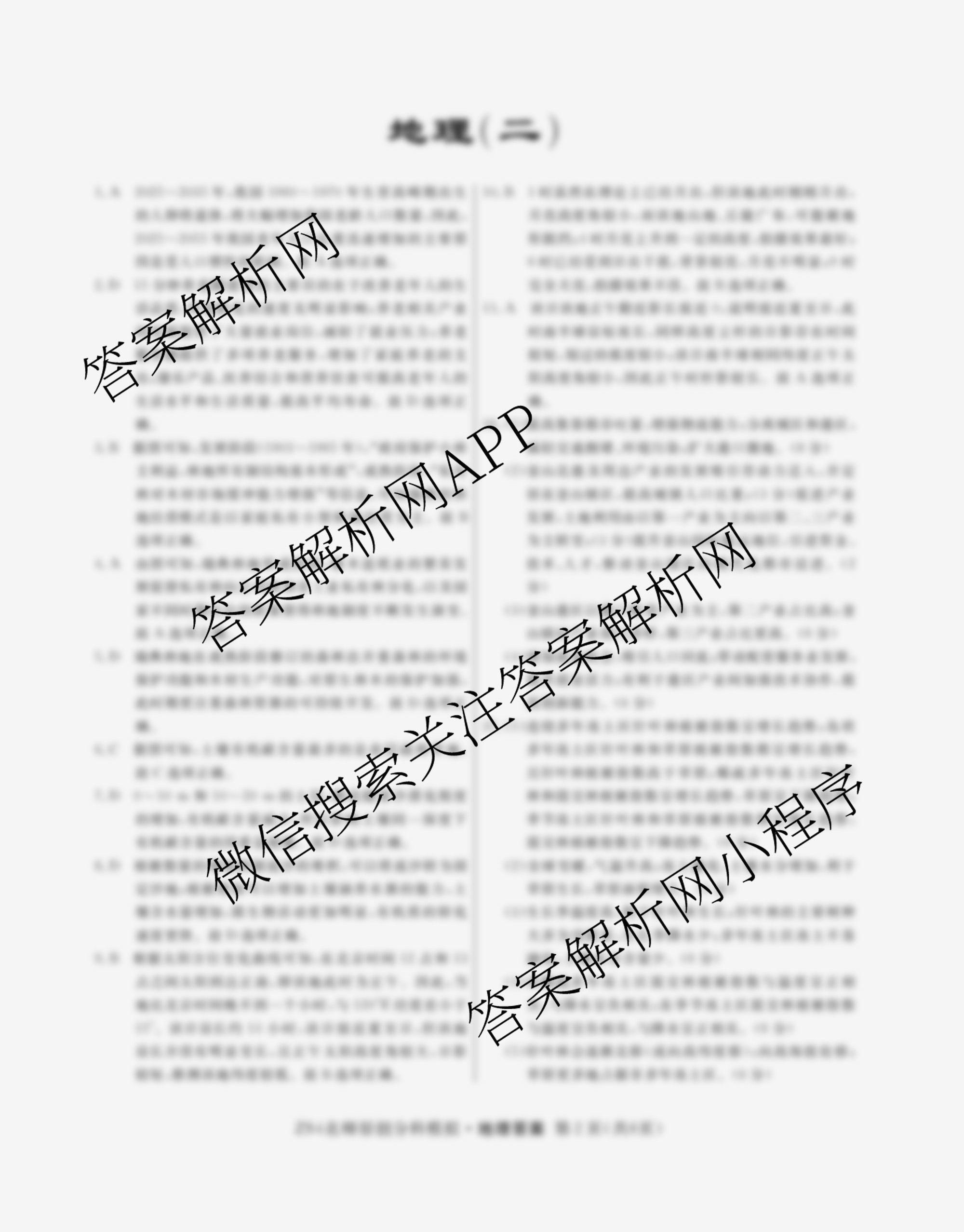 2024届[高三]总复习名师原创分科模拟 地理(ZS4)(二)2答案