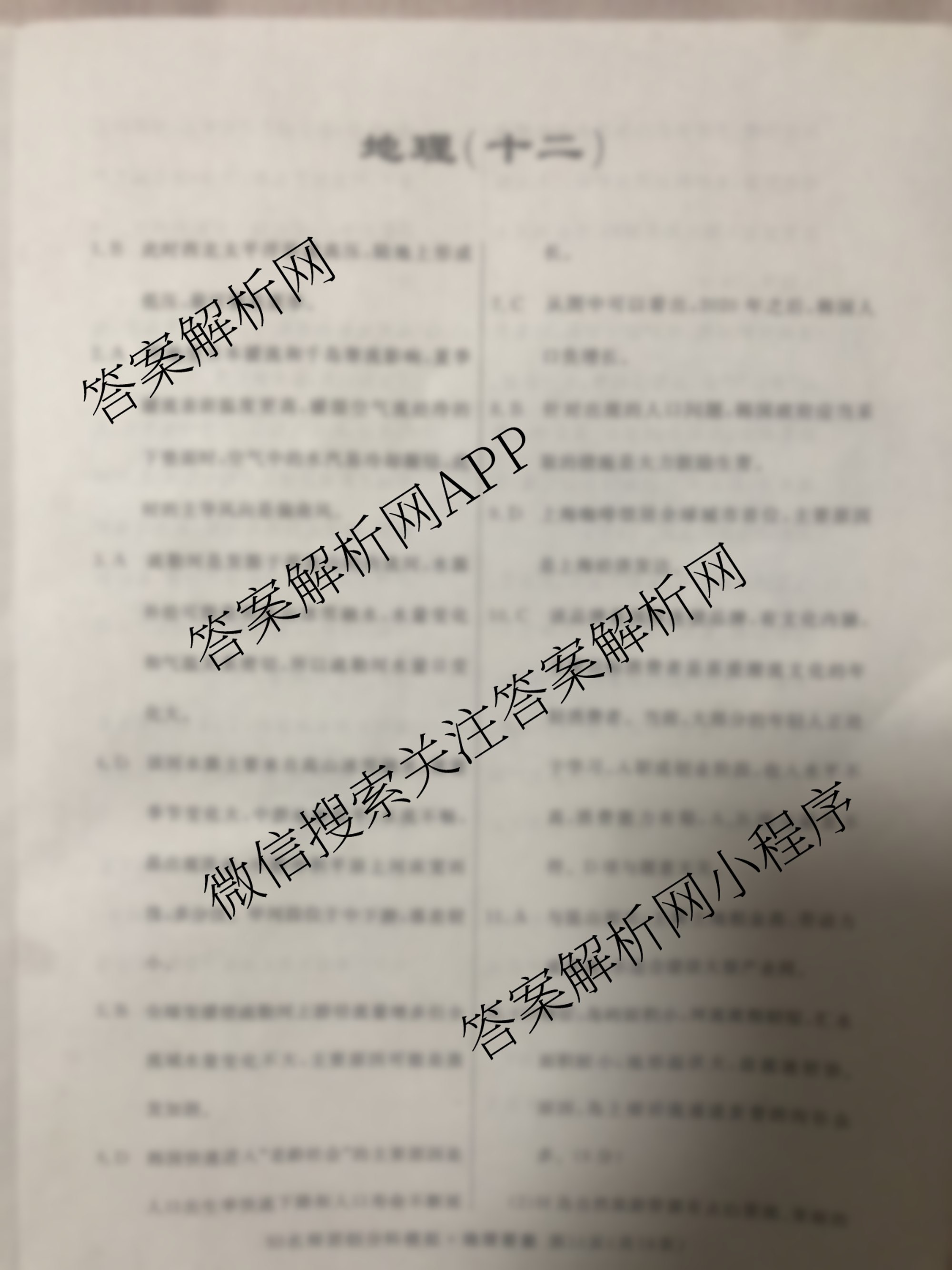 2023届高三总复习S3名师原创模拟地理(十二)12答案