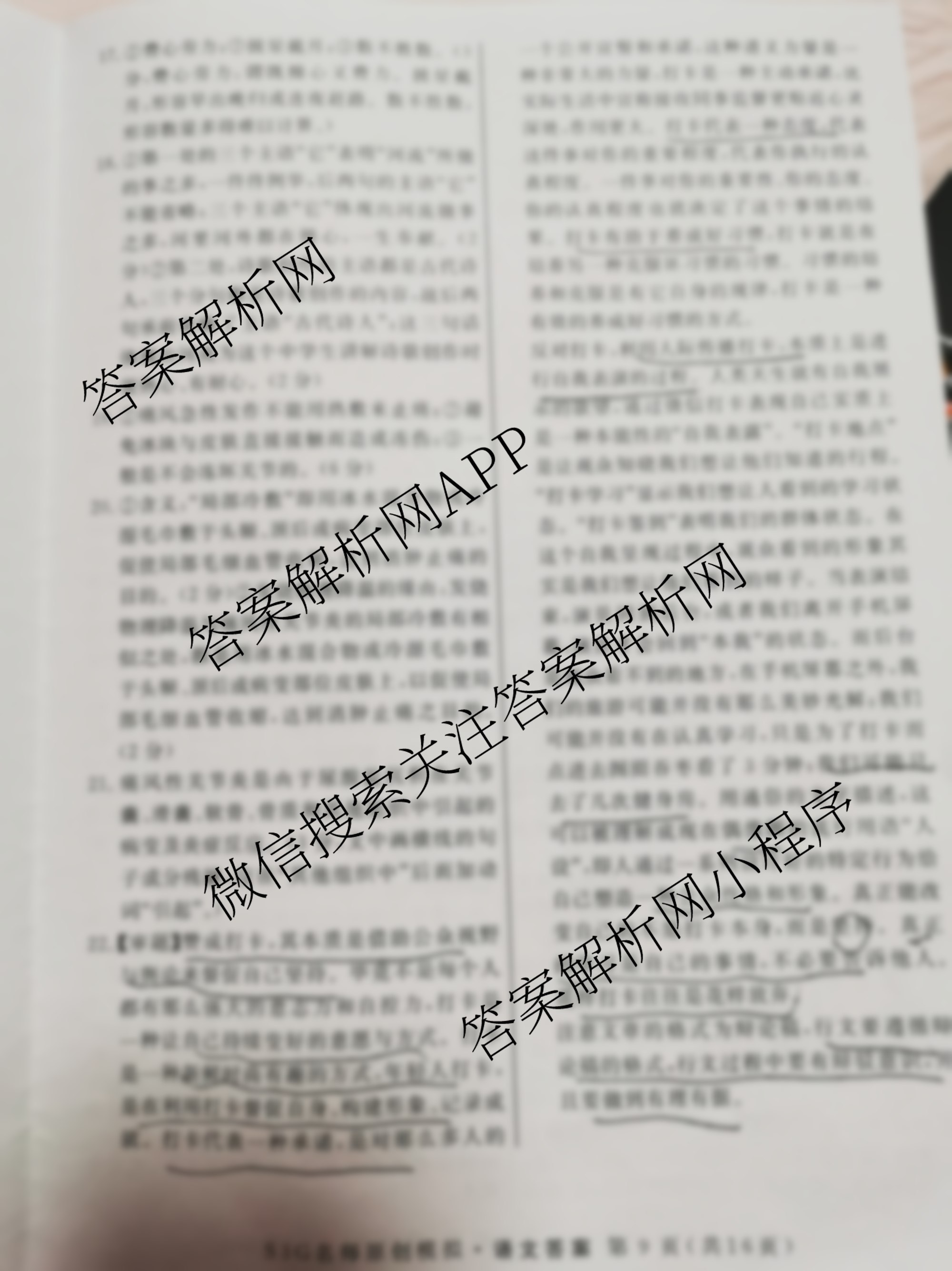 2023届高三总复习S3G名师原创模拟 语文(九)9答案