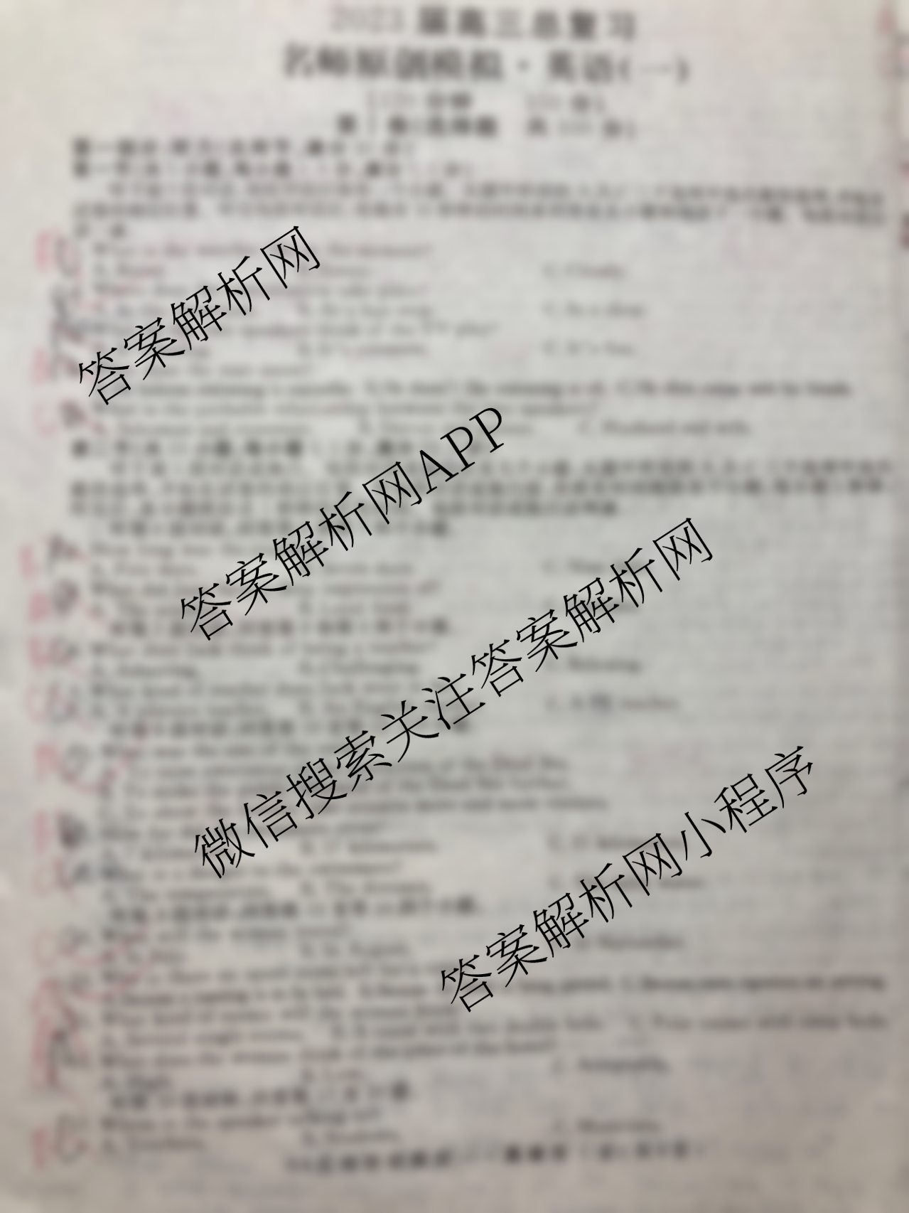 - [高三]2023届总复习·新S3 名师原创模拟英语(一)1答案