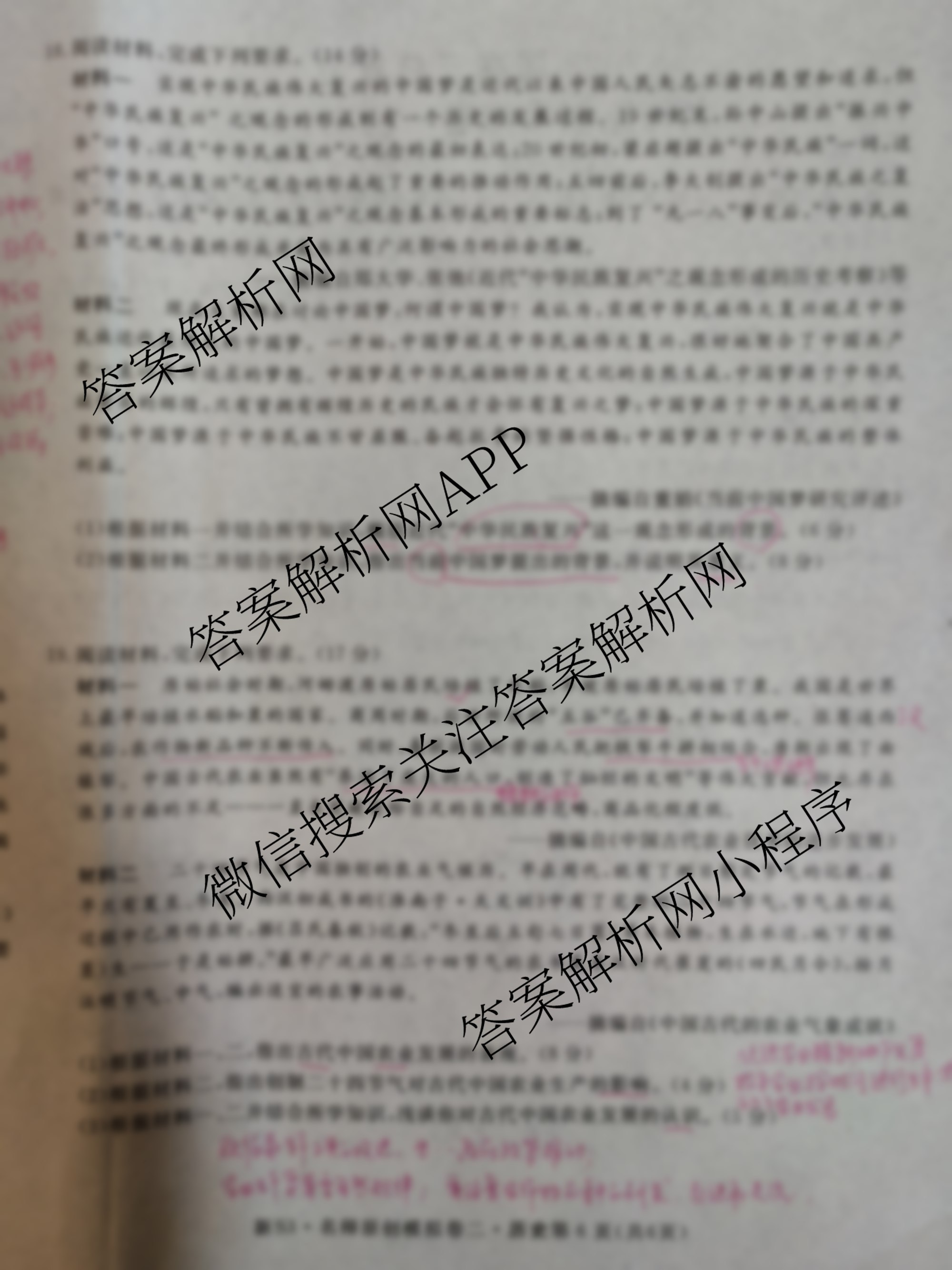 - 2023届[高三]总复习S3名师原创模拟历史(二)2答案