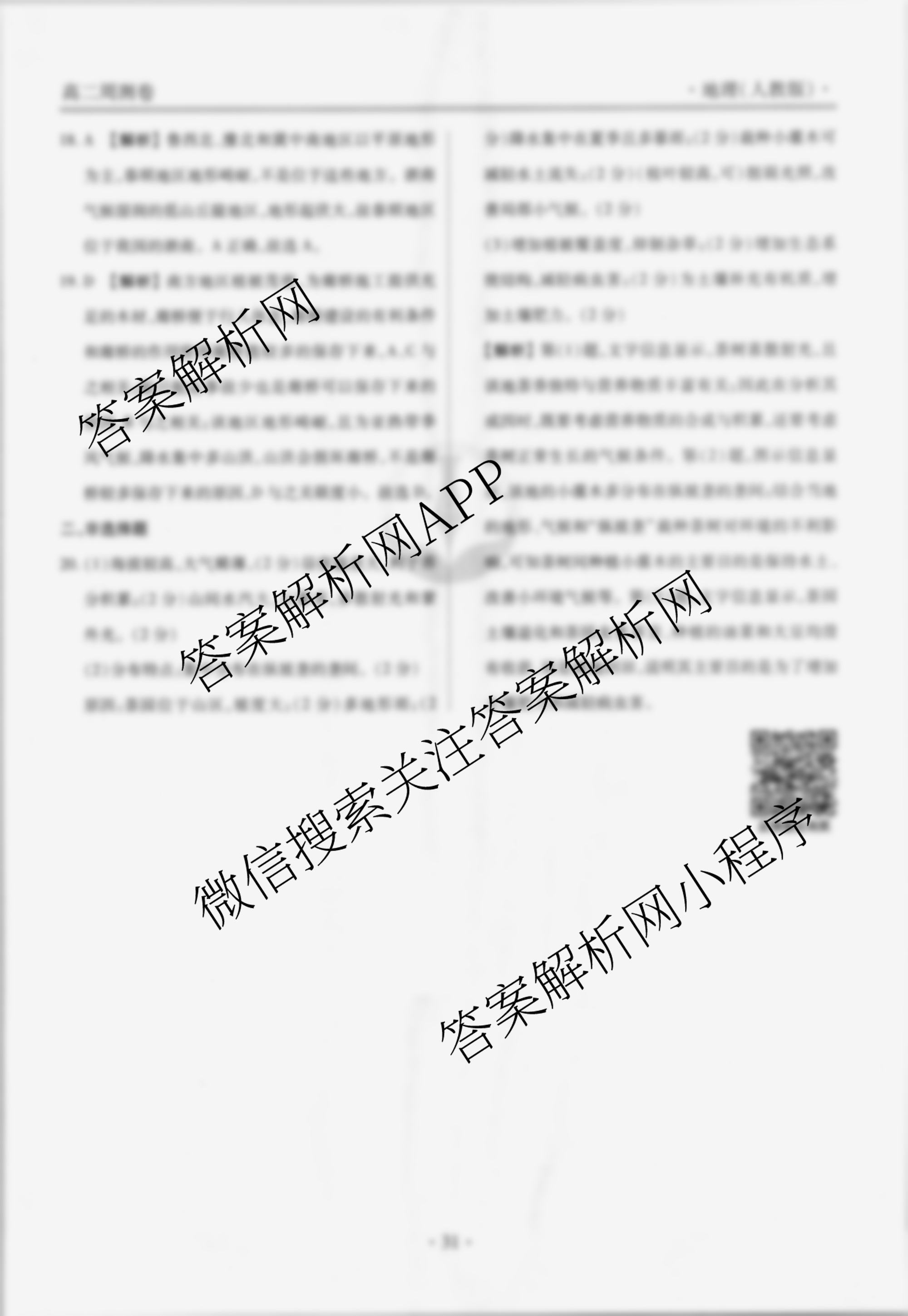 2022-2023衡水金卷先享题高二同步周测卷地理(人教版)(十)10答案