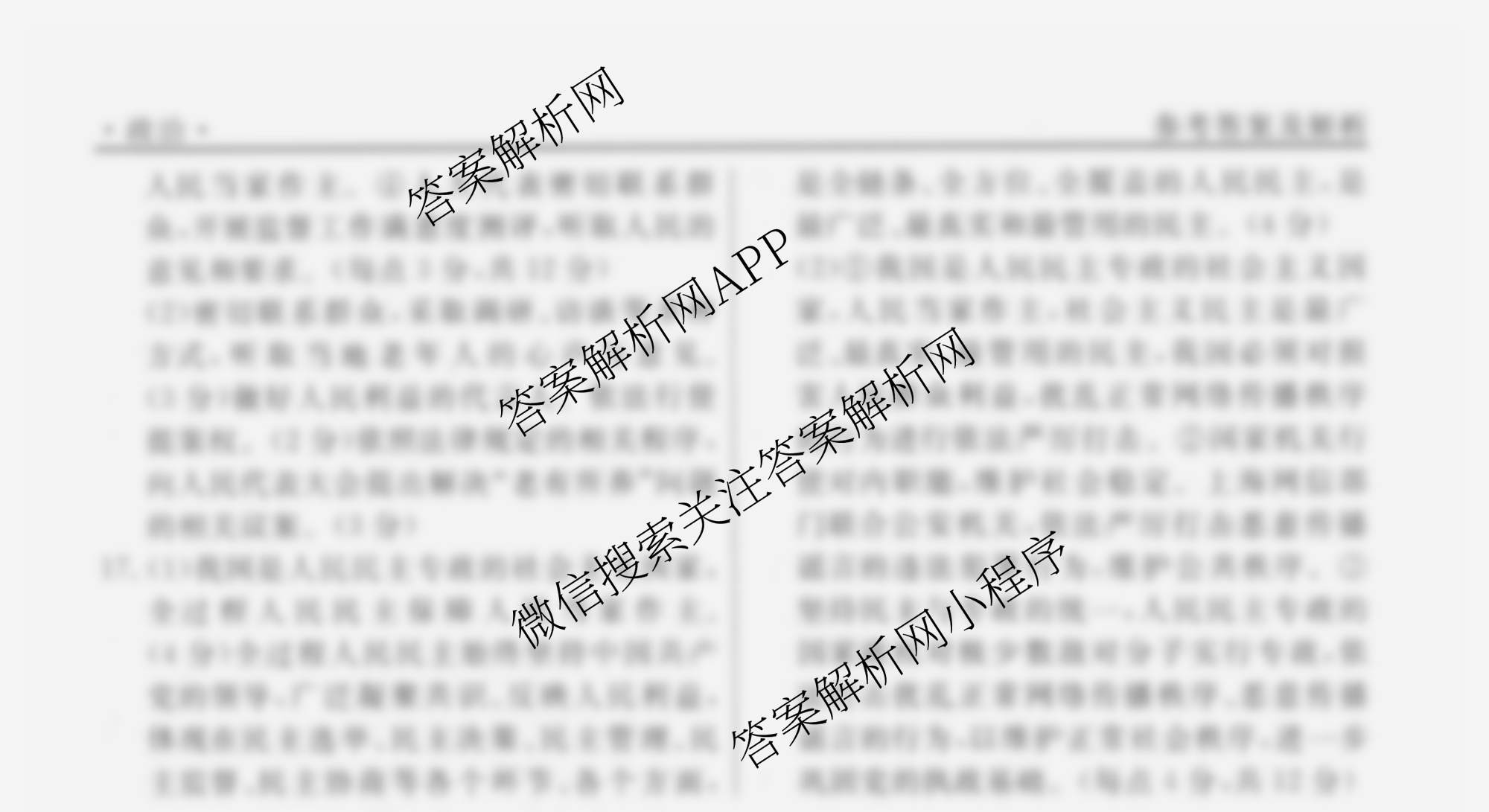 衡水名师卷2024-2025学年度高三一轮复习考点测试卷政治(40分钟空心菱形)(十一)11答案