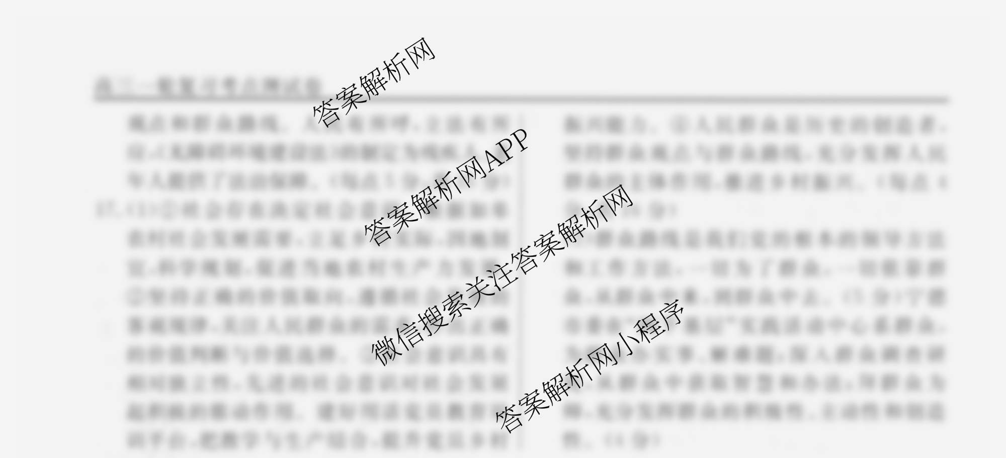 衡水名师卷2024-2025学年度高三一轮复习考点测试卷政治(40分钟空心菱形)(二十)20答案